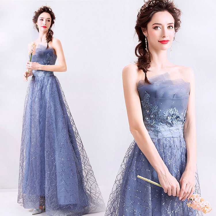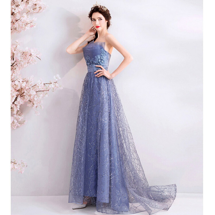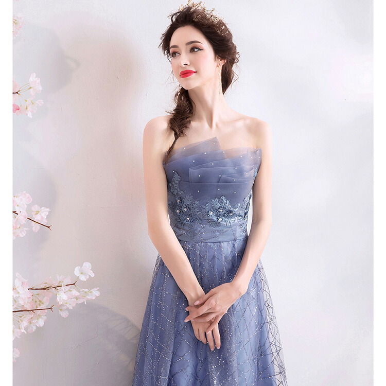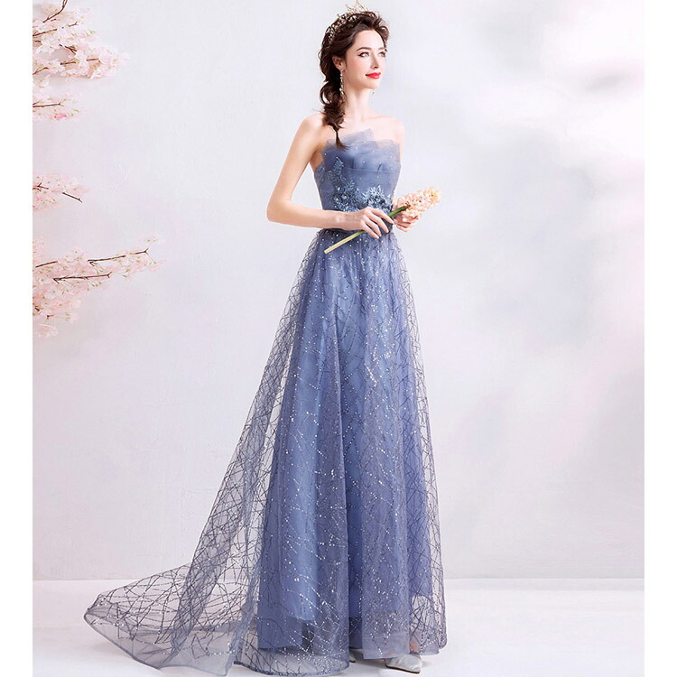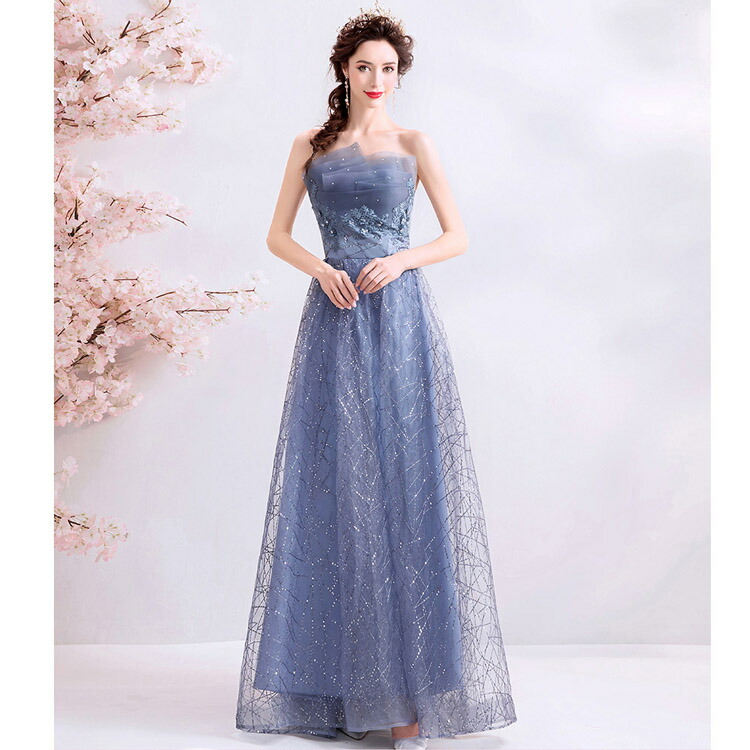 イブニングドレス ブルー 刺繡花柄 キ レディースファッション 超目玉商品 XS S M L