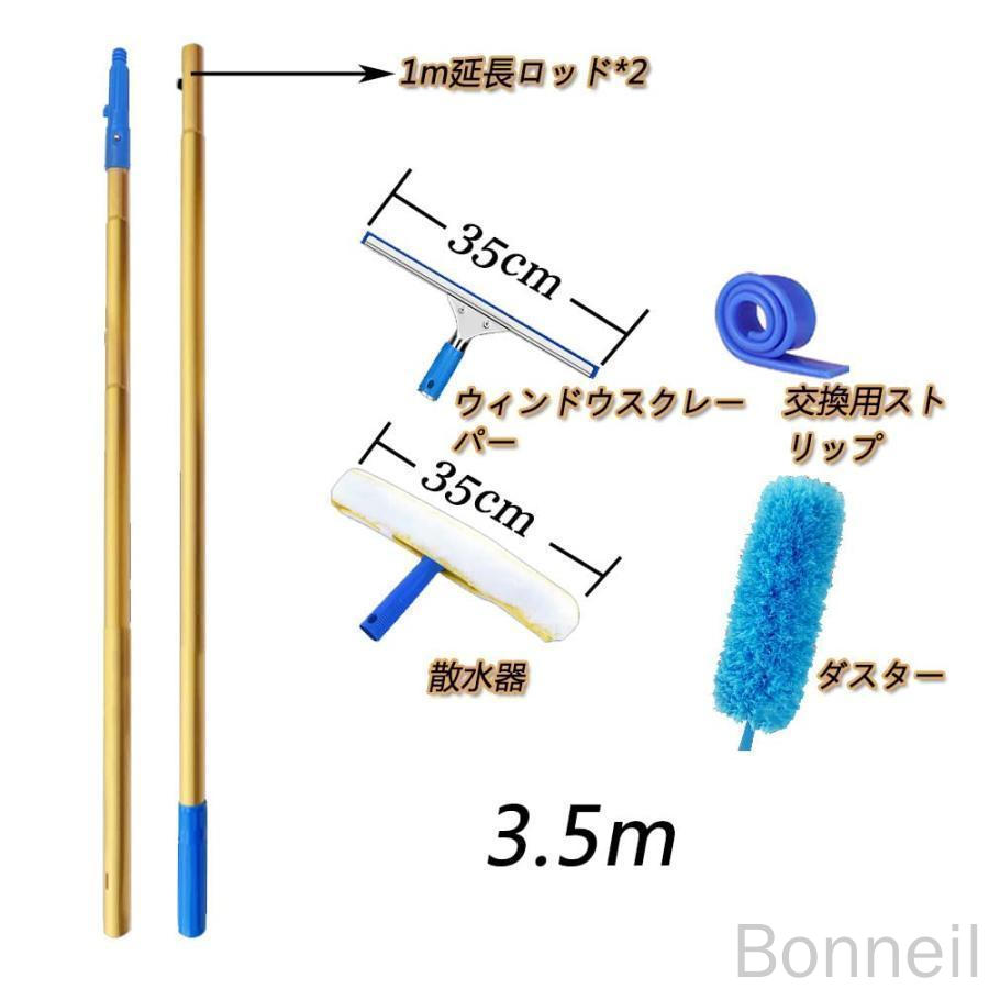 伸びるロングモップ 高所窓掃除用 超ロングポール3.5~12.5m 業務用 窓拭きワイパー ロングモップ大掃除セット対応 外壁ガラスブラシ付き