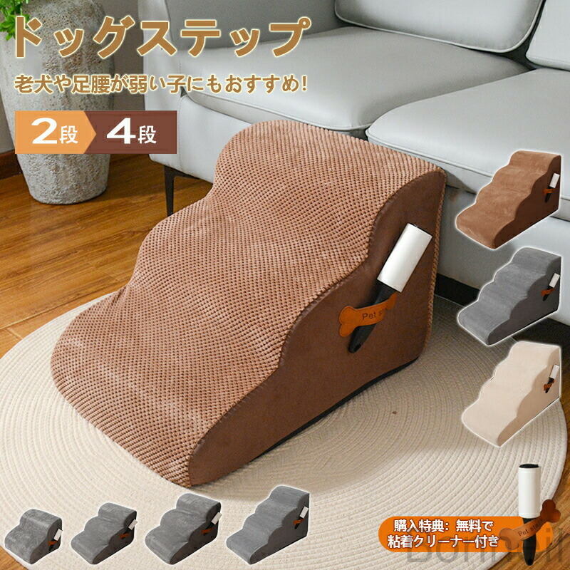 愛犬の毎日を優しくサポート 関節に優し 犬用品 介護用品 スロープ ステップ 人気 グレー ベージュ コーヒー 2段 3段(小) 3段(大) 4段