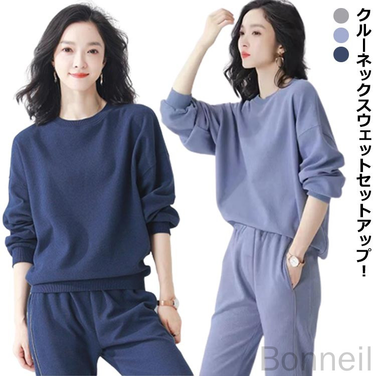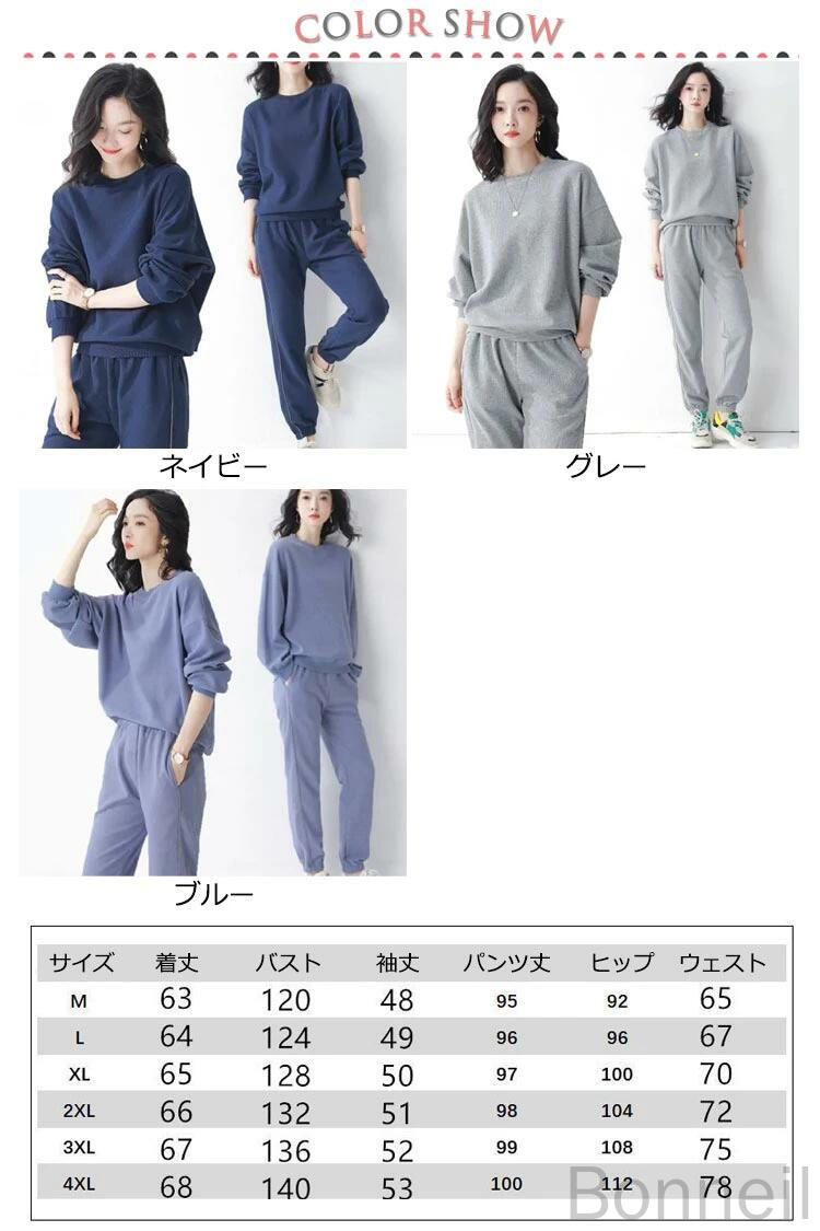 スウェット レディース セットアップ レディースファッション 通販 M L XL 2XL 3XL 4XL ネイビー グレー ブルー