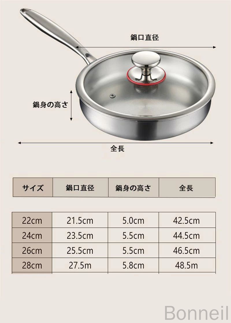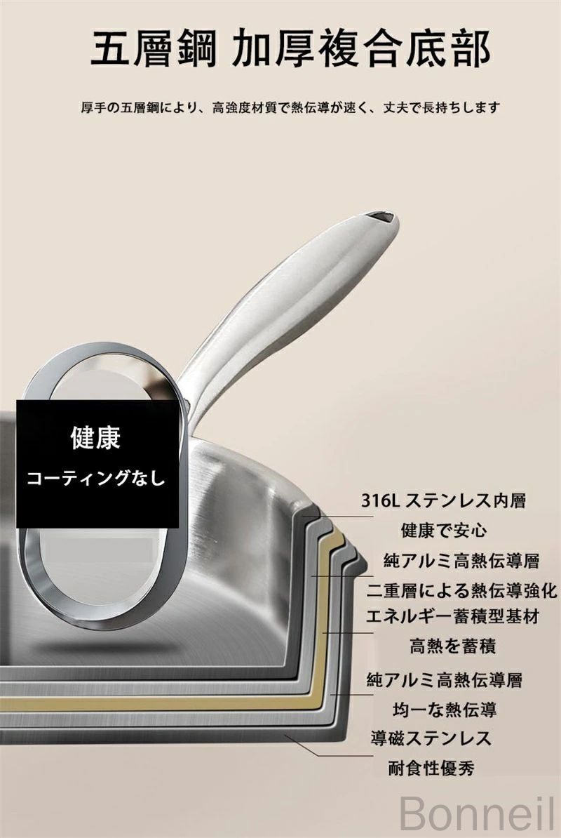 五層ステンレス製 コーティングなし ガ 22cm 24cm 26cm 28cm