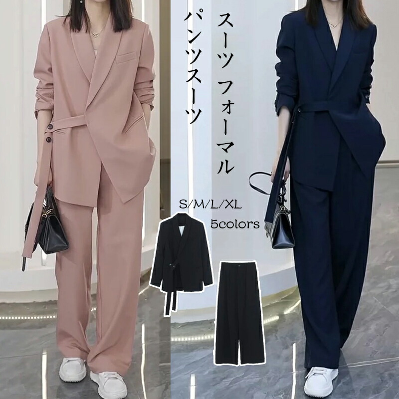 ワイドパンツスーツ パンツスーツ レデ ブラック2点セット ネイビー2点セット ピンク2点セット ベージュ2点セット ダークグレー2点セット S M L XL