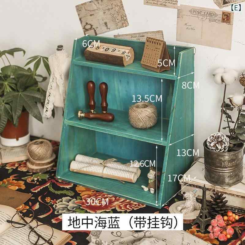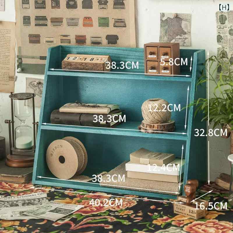 収納ケース デスク上置き棚 木製 卓上 A: 斜め2層アンティーク B: 斜め2層地中海青 C: 斜め2層原木 D: 斜め3層アンティーク E: 斜め3層地中海青 F: 斜め3層原木 G:幅広斜め3層アンティーク H:幅広斜め3層地中海青 I:幅広斜め3層原木