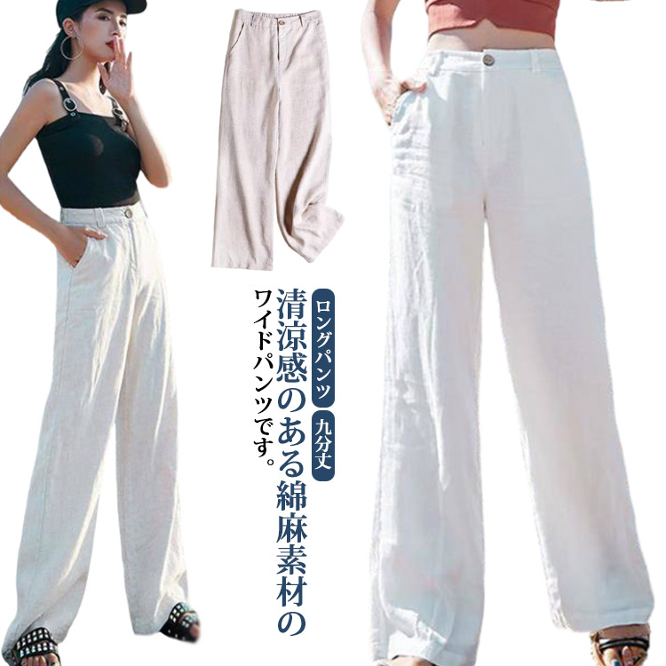 白 ワイドパンツ レディース ウエスト レディースファッション 超目玉商品 ホワイト九分丈 ベージュ九分丈 ホワイトロング丈 ベージュロング丈 S M L XL 2XL 3XL