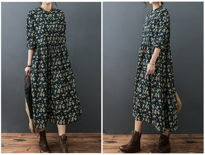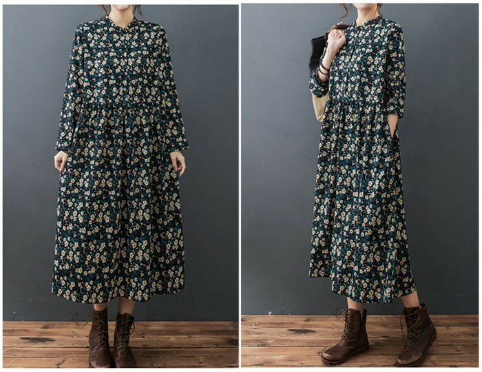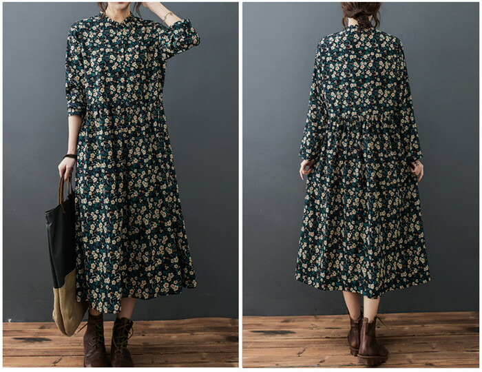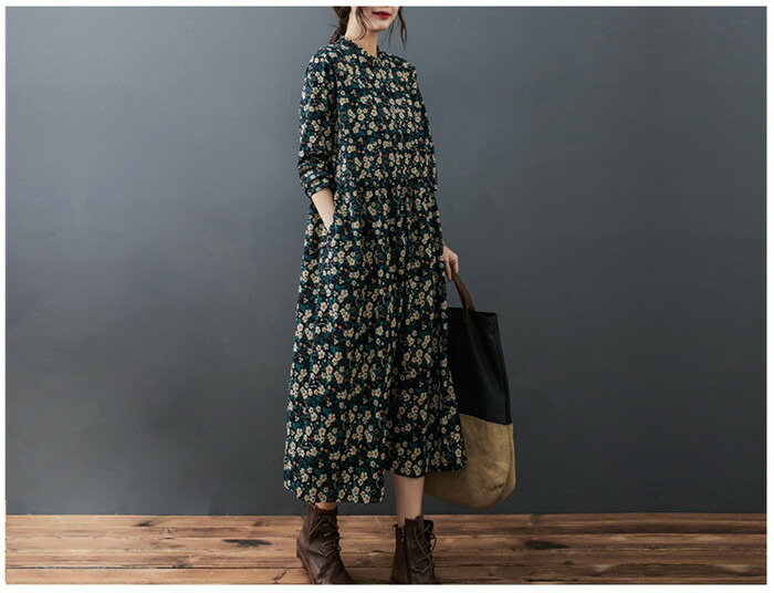 ロングワンピース 長袖 春 レディース レディースファッション 新登場! M L XL 2XL