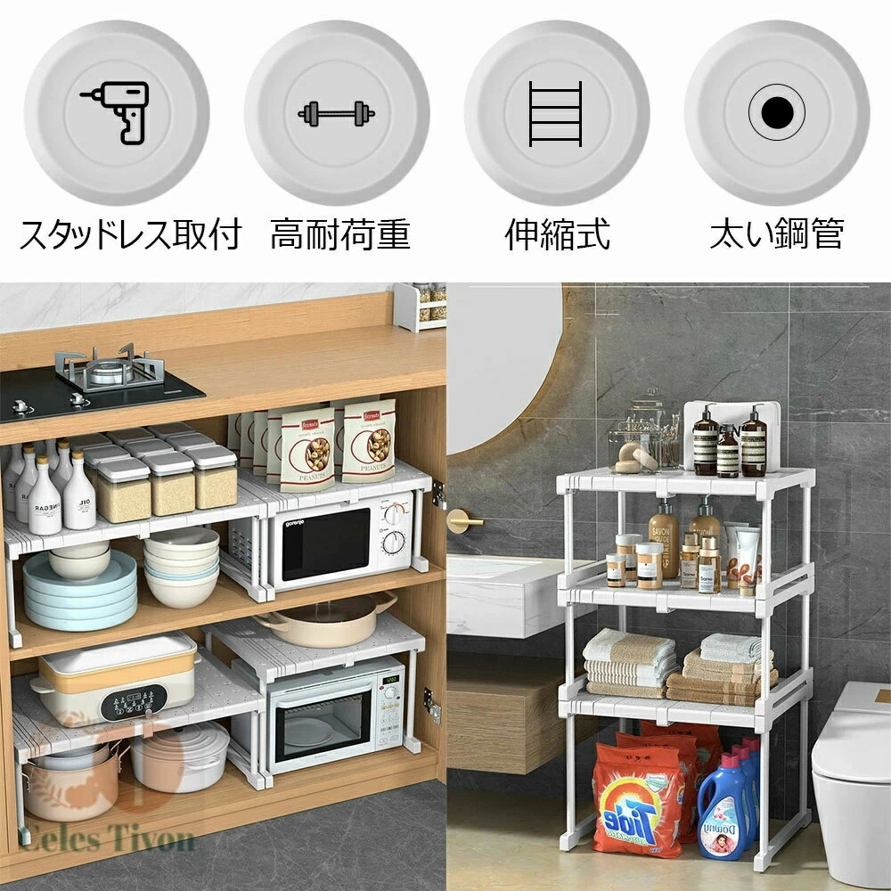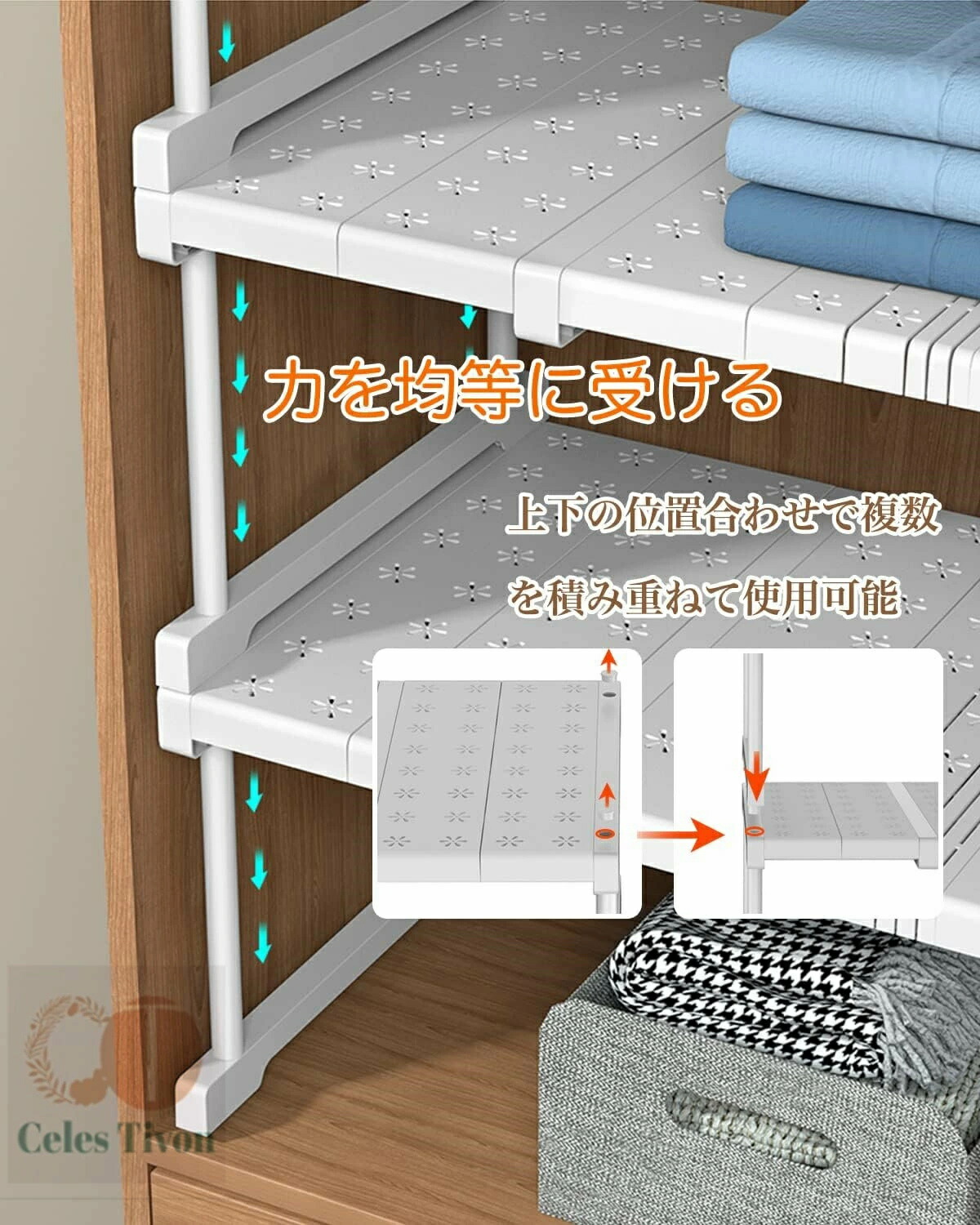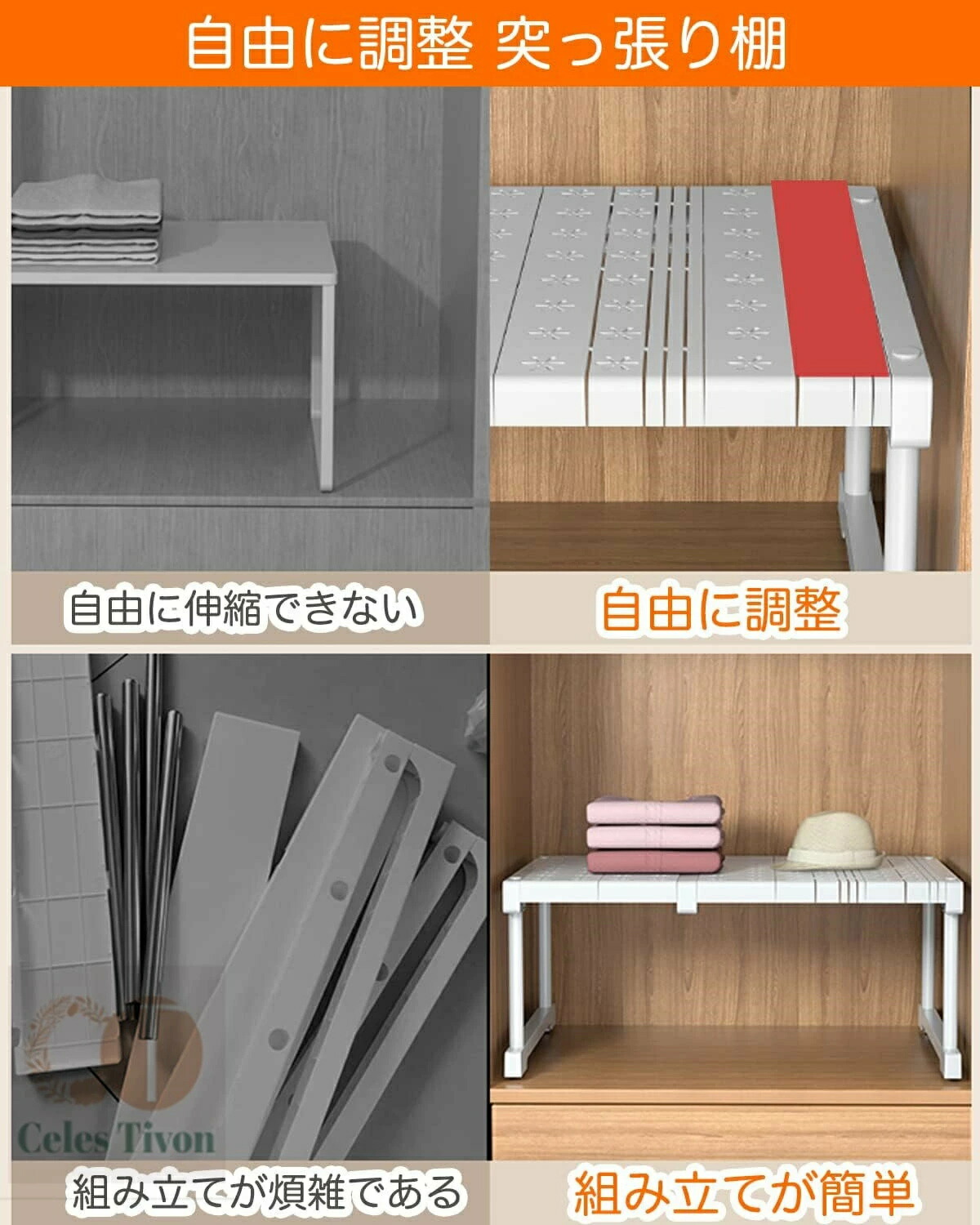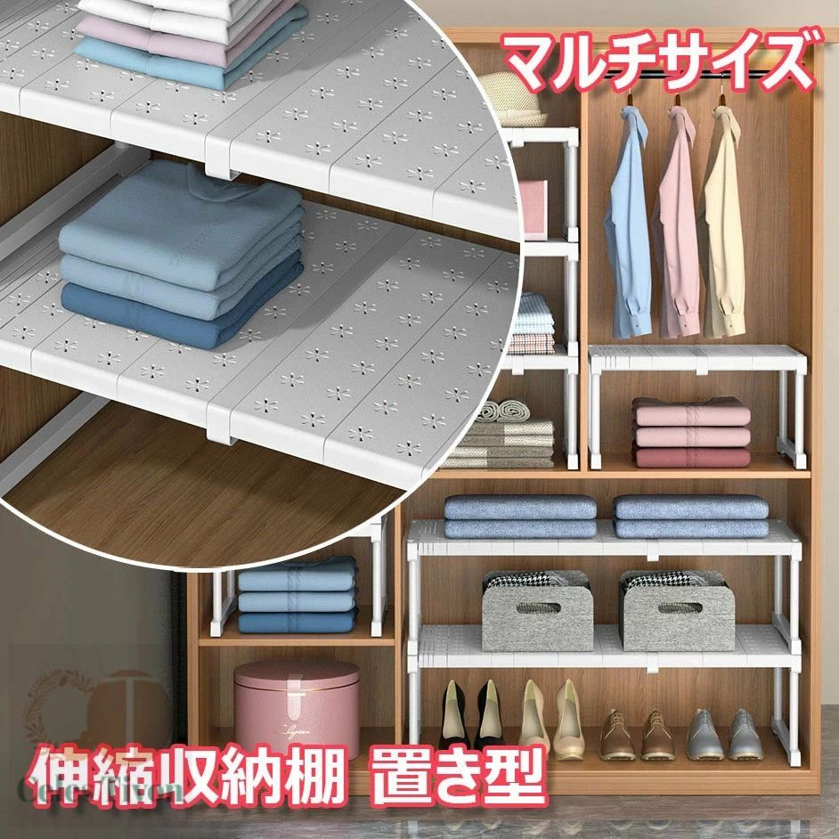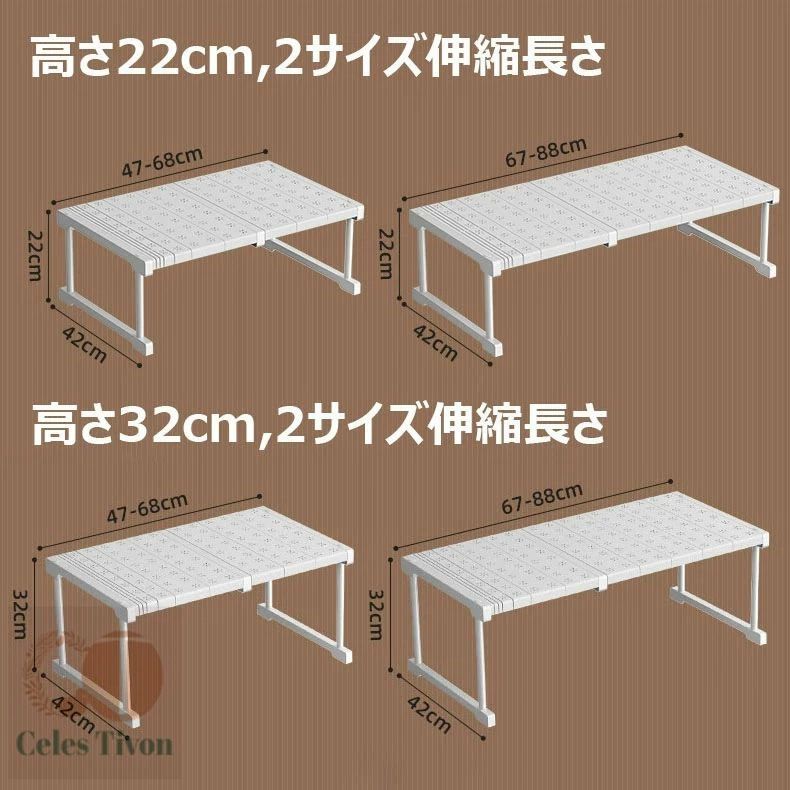 整理ラック クローゼット 高耐荷重 食 高さ22cm 高さ32cm M長さ47-68 L長さ67-88