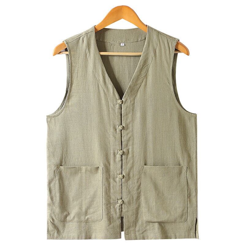 ジレ ベスト メンズ おしゃれ 夏ベスト サマーベスト ビジネス 前開き 綿麻 綿 麻 リネンベスト コットンリネン トップス カジュアル チャイナ風 インナー 涼しい 大きいサイズ 薄手 リゾート
