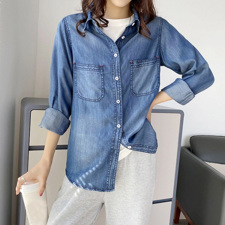 リヨセル デニムシャツ レディース 春 レディースファッション 超目玉商品 Mサイズ Lサイズ XLサイズ 2XLサイズ サックスインディゴ インディゴブルー