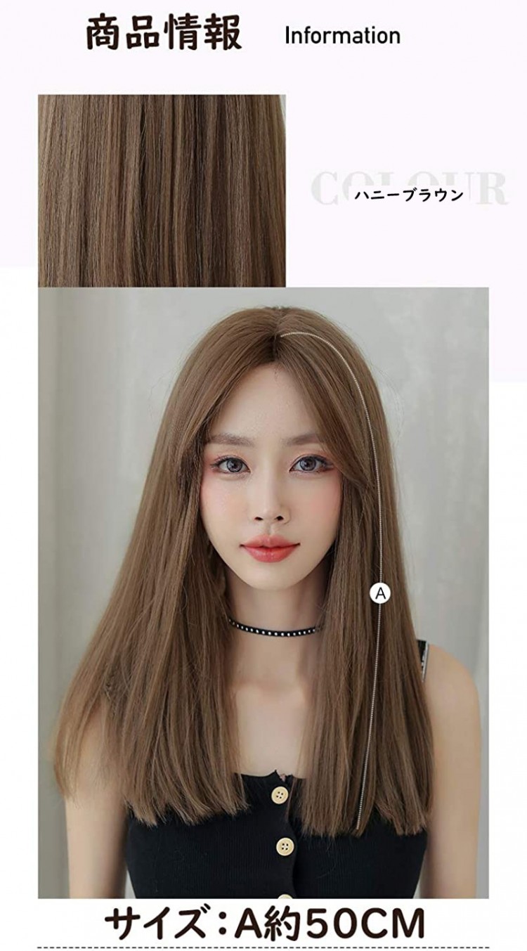 ウィッグ ストレート 真ん中分け ロン バッグ 小物 ブランド雑貨 続々登場 ハニーブラウン ライトブラウン ダークブラウン
