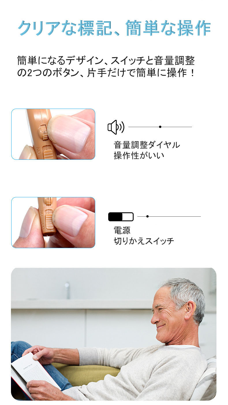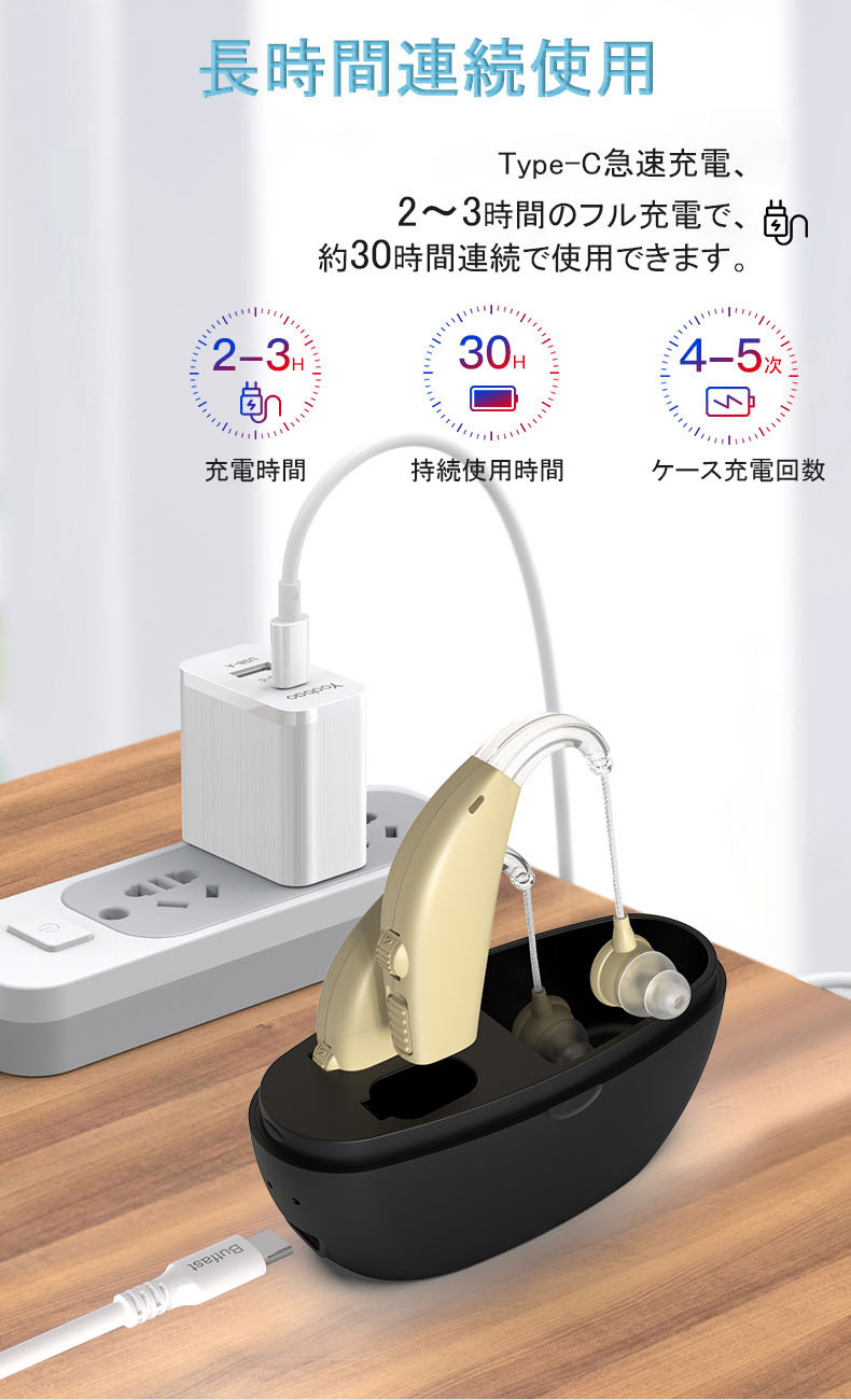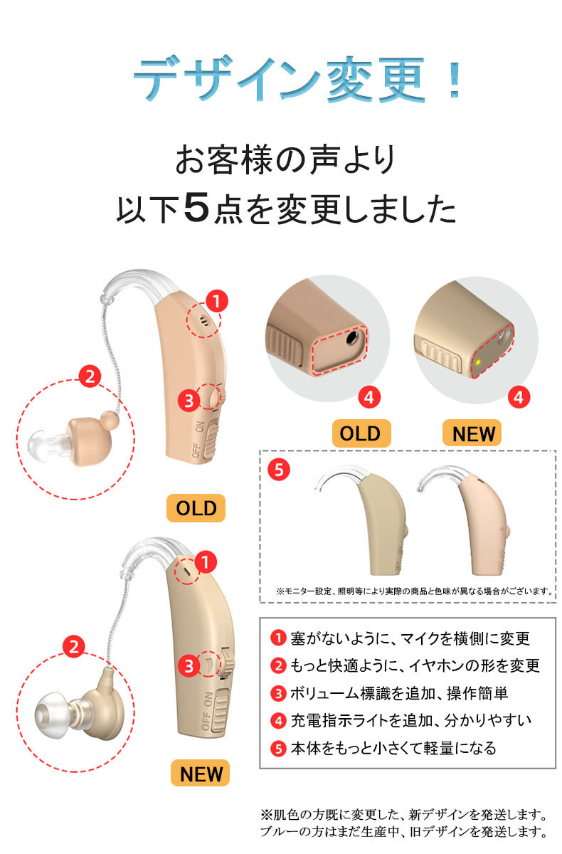 集音器 充電式 耳掛け式 デジタル 軽 肌色(ホワイトケース) 肌色(ブラックケース) ブルー(ホワイトケース) ブルー(ブラックケース)
