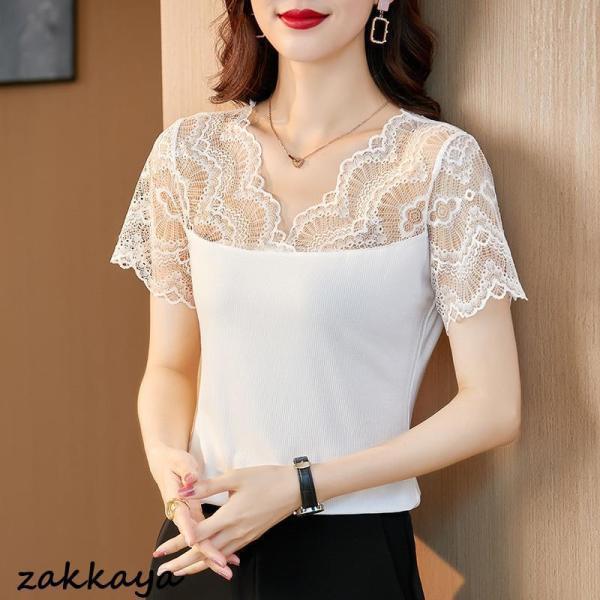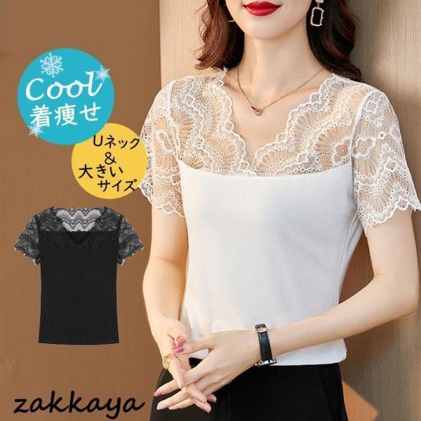 tシャツ レディース 半袖 レース 花 トップス その他 早い者勝ち ホワイト ブラック L XL 2XL