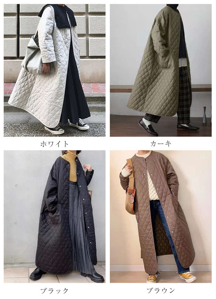 キルティングコート レディース 秋冬 コート ジャケット 早い者勝ち ブラック カーキ ホワイト ブラウン