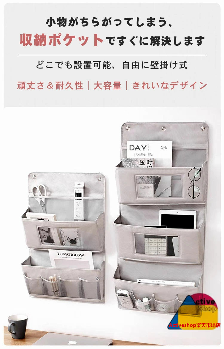 ウォールポケット 吊り下げ 壁掛け収納 グレー ベージュ M(40*63cm) L(40*89cm)