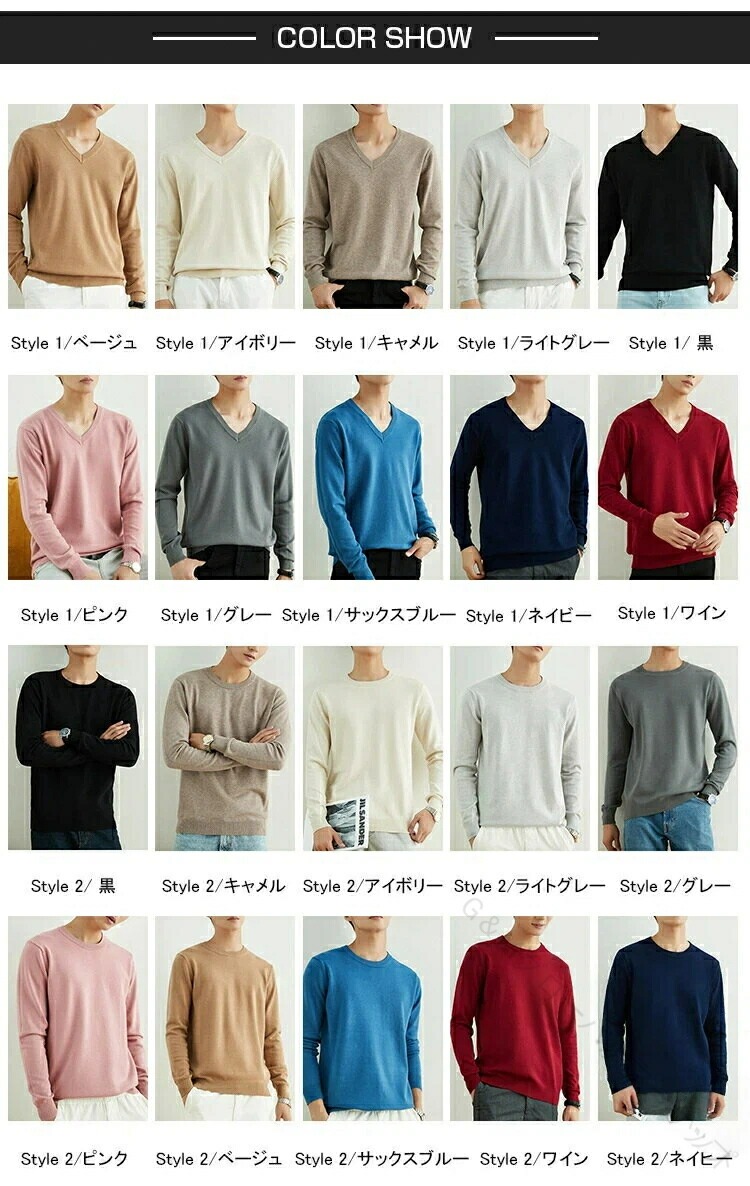長袖 ニット クルーネック Vネック トップス ニット セーター 早い者勝ち M L XL 2XL 3XL Style1ベージュ Style1アイボリー Style1キャメル Style1ライトグレー Style1黒 Style1ピンク Style1グレー Style1サックスブルー Style1ネイビー Style1ワイン Style2黒 Style2キャメル Style2アイボリー Style2ライトグレー Style2グレー Style2ピンク Style2ベージュ Style2サックスブルー Style2ワイン Style2ネイビー