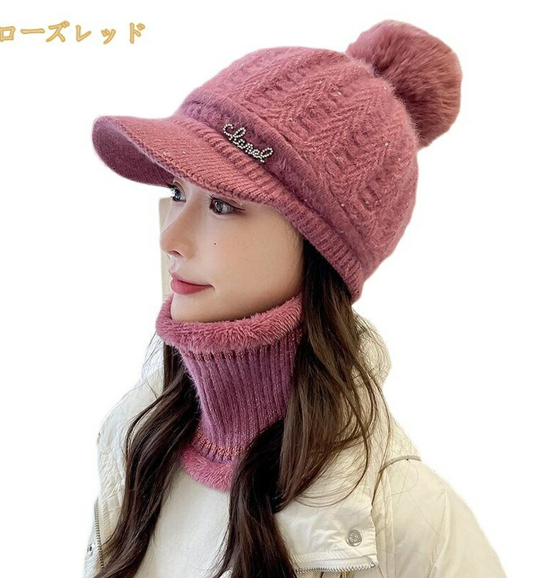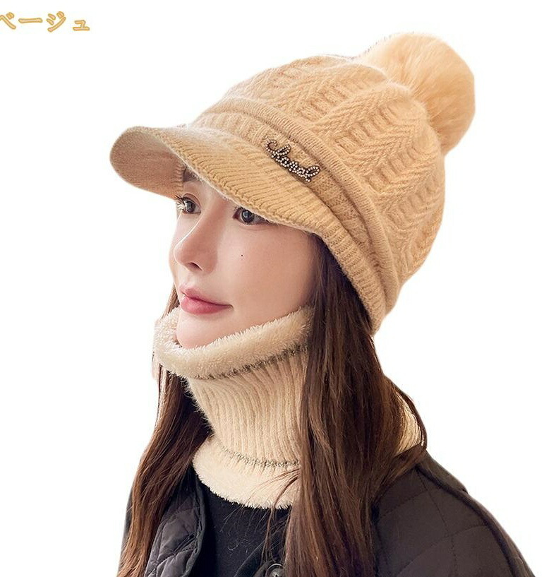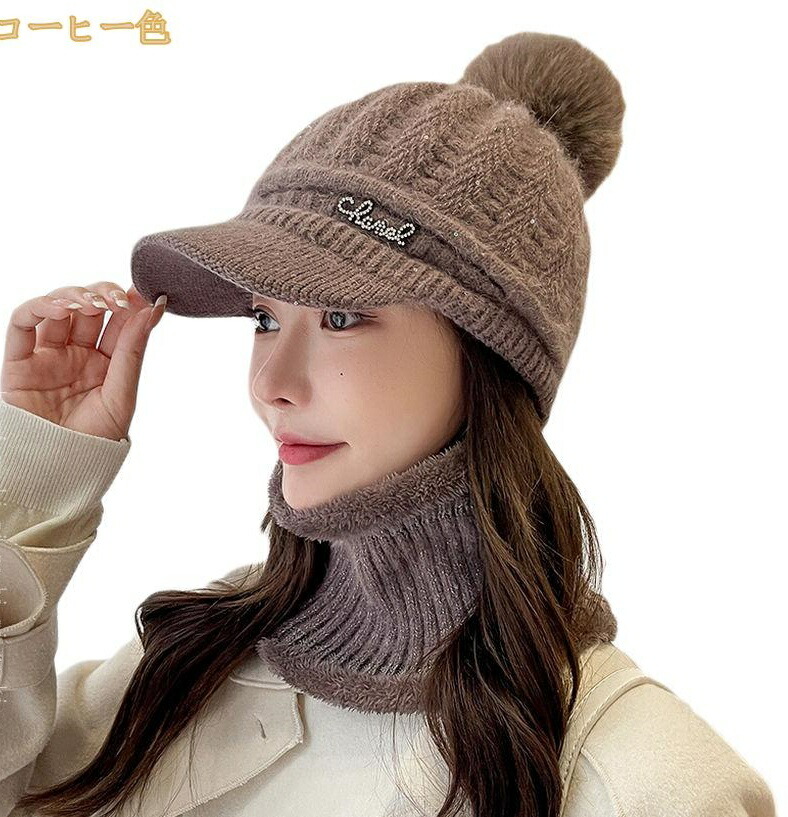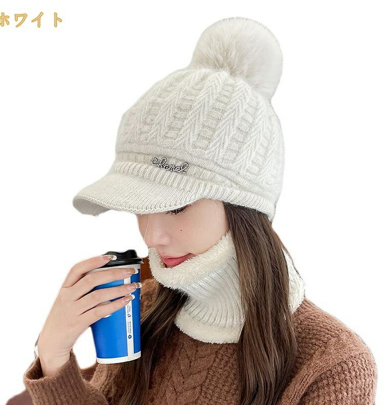 秋冬 レディース ニット帽 帽子 スヌード ニットキャップ ネックウォーマーセット 暖かい 裏ボア 裏起毛 暖かい ハット 秋用 冬用 防寒対策 防風 防寒 ポンポン 2点セット 3点セット つば付き 小顔効果 大人 可愛い スノーボード