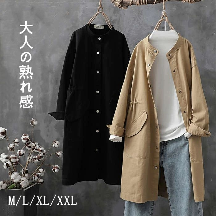 ゆったり 上着 大きいサイズ ロング丈 コート ジャケット 豊富な品揃え ブラック キャメル M L XL XXL