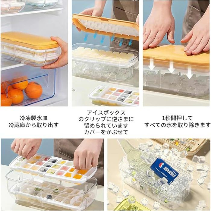 製氷器 製氷皿 四角氷 氷作る容器24 キッチン用品 食器 調理器具 早い者勝ち ブルー イエロー 一段24個 二段48個