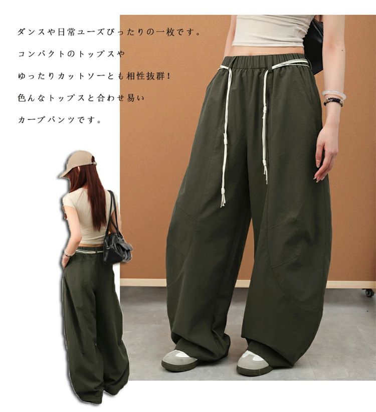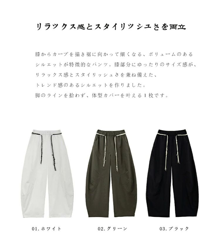 カーブパンツ ワイド パンツ レディー レディースファッション 続々登場 ホワイト ブラック グリーン S M L XL