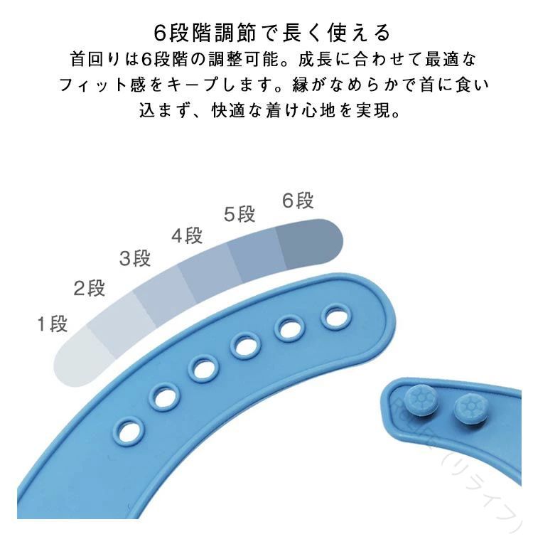 【2点セット】立体構造でこぼれない安心立体型すくい式デザイン+底部補強リブで、形が崩れず食べこぼしをしっかりキャッチ。お子様の動きにもへたらず、いつでも清潔な服で食事が楽しめます。肌に優しいシリコーン素材柔らかく弾力のある食品用シリコーンを使用。肌にフィットし、ずれにくく、着け心地が軽くストレスフリー。広めのストラップ設計で、肩や首に負担をかけません。6段階調節で長く使える首回りは6段階の調整可能。成長に合わせて最適なフィット感をキープします。縁がなめらかで首に食い込まず、快適な着け心地を実現。お手入れ簡単・清潔保持防水・防汚素材で、汚れを拭くだけ、または水洗いOK。刮れにくく、いつでも清潔に使え、ママの負担を軽減します。環境にも優しい素材安全性の高い・保素材を使用。赤ちゃんにも地球にもやさしい製品です。