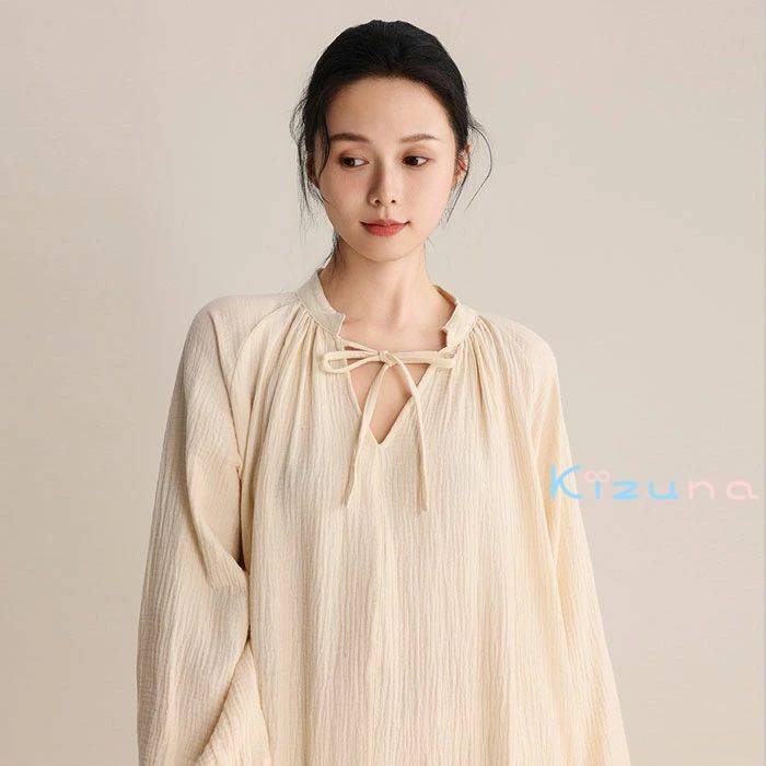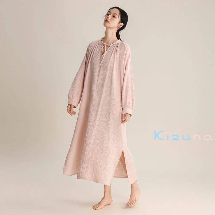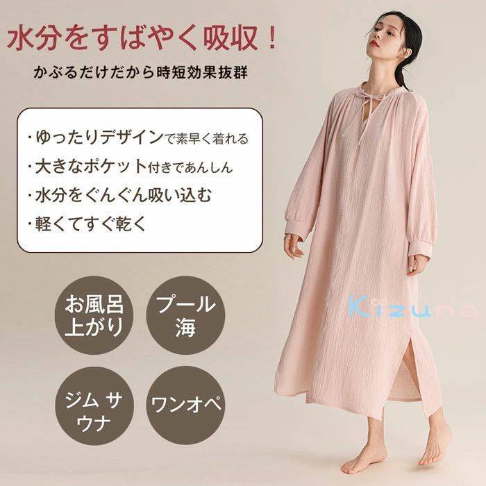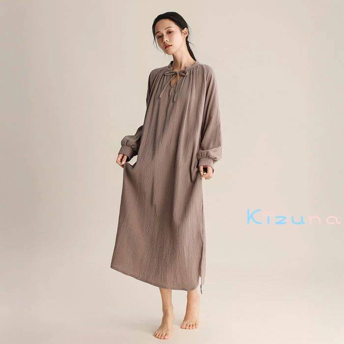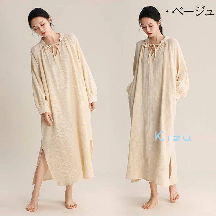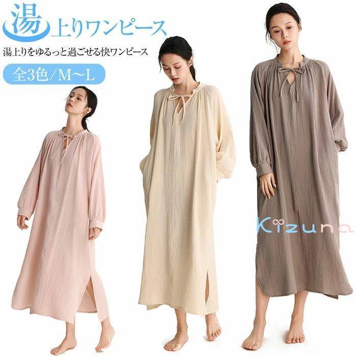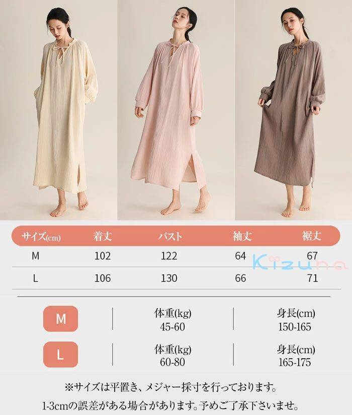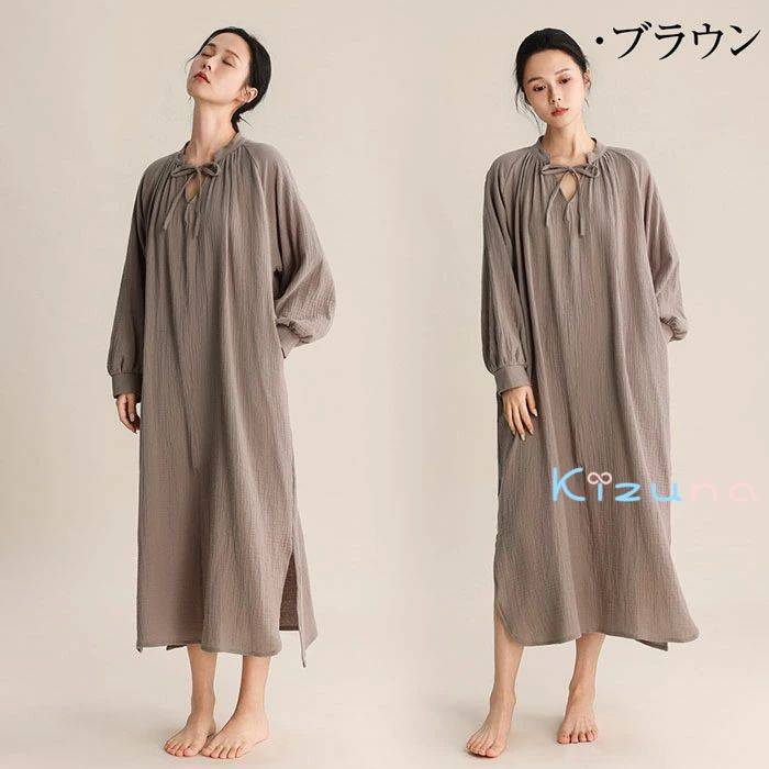 ワンピース ルームウェア 薄手 長袖 レディースファッション 超目玉商品 ブラウン ピンク ベージュ M L