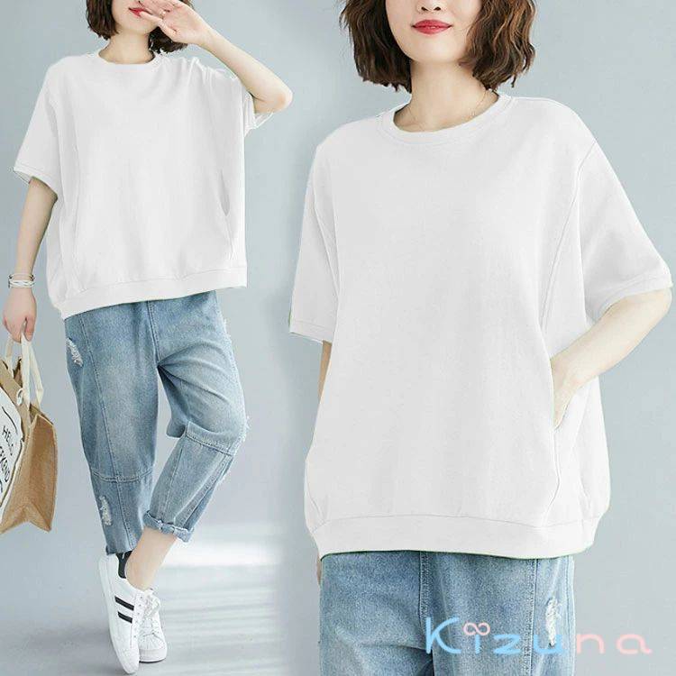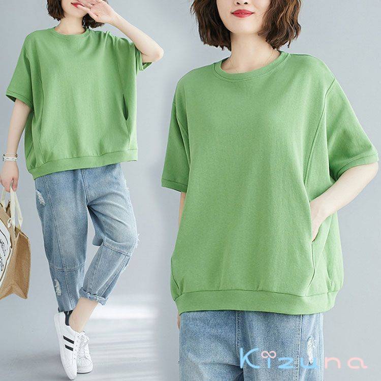 体型カバー 5分丈 tシャツ スウェッ トップス シャツ ブラウス 続々登場 ブラック グリーン イエロー ホワイト ブルー バラレッド M L XL 2XL 3XL 4XL