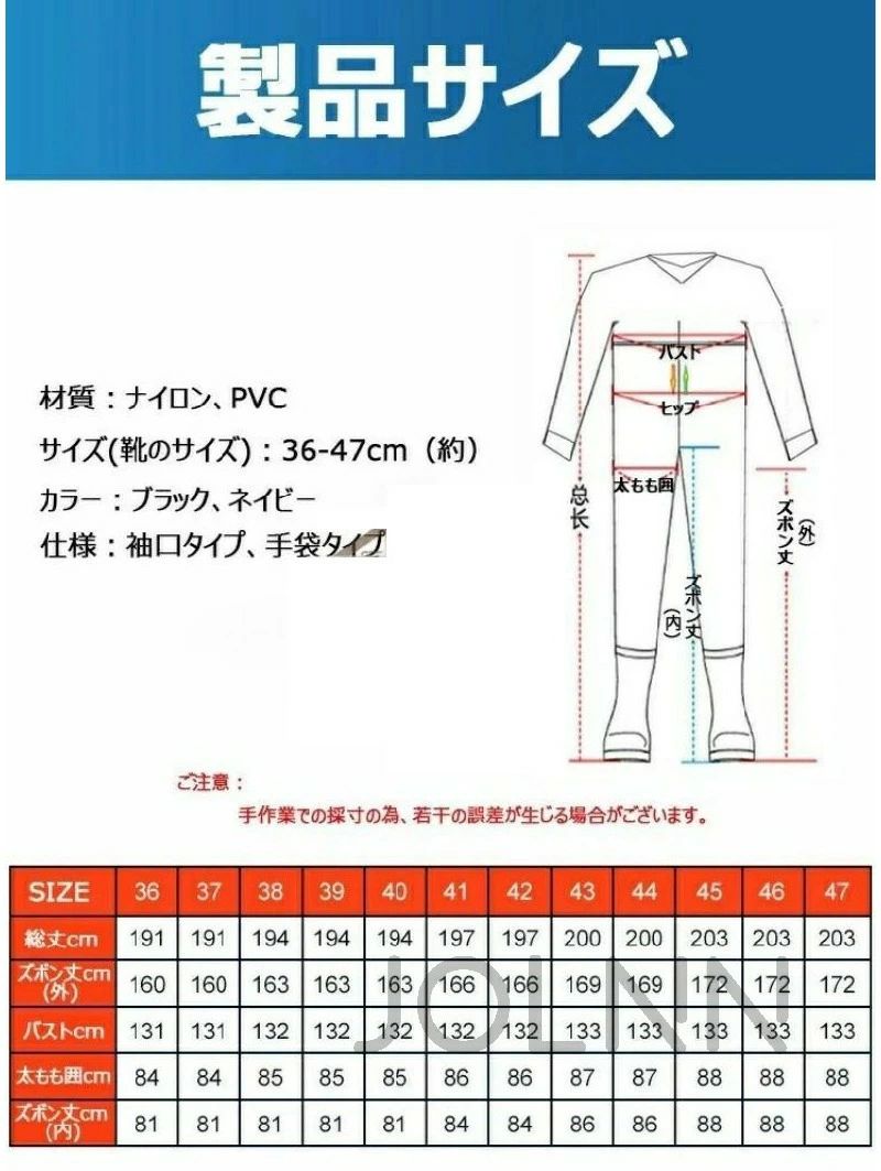 釣り ウェーダー 全身防水 長袖 釣り フィッシング ウェア ウェーダー フローター 豊富 ブラック【袖口タイプ】 ブラック【手袋タイプ】 ネイビー【袖口タイプ】 ネイビー【手袋タイプ】 36(靴サイズ23cm約) 37(靴サイズ23.5cm約) 38(靴サイズ24cm約) 39(靴サイズ24.5cm約) 40(靴サイズ25cm約) 41(靴サイズ25.5cm約) 42(靴サイズ26cm約) 43(靴サイズ26.5cm約) 44(靴サイズ27cm約) 45(靴サイズ27.5cm約) 46(靴サイズ28cm約) 47(靴サイズ28.5cm約)
