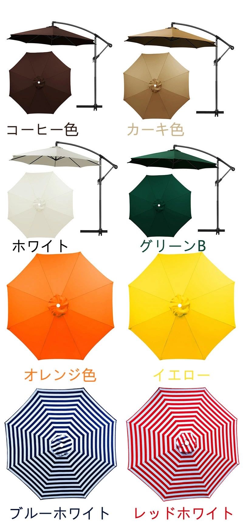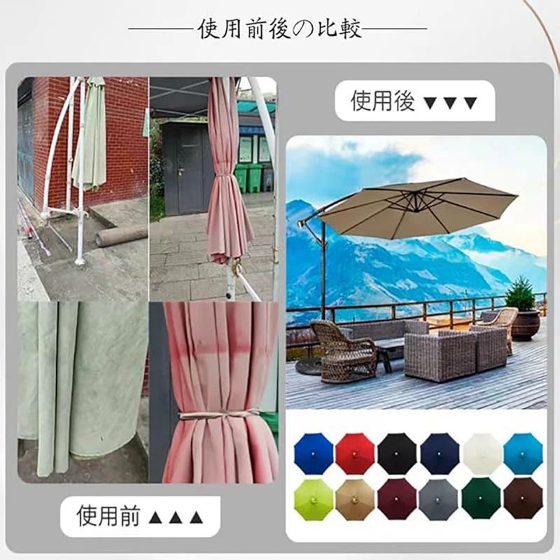 ガーデンパラソル 替え布 パラソル傘布 ブラック レッド ホワイト グリーン グリーンB カーキ色 コーヒー色 ネイビーブルー レッドB グレー ブルーB ブルー イエロー オレンジ色 レッドホワイト ブルーホワイト 2M/6本傘の骨 2.3M/8本傘の骨 2.5M/6本傘の骨 2.7M/6本傘の骨 2.7M/8本傘の骨 3M/6本傘の骨 3M/8本傘の骨