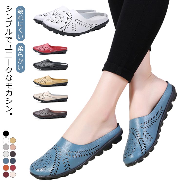 ローヒール モカシン カジュアルシューズ レディース パンプス フラットソール PUレザー かかとなし サンダル 歩きやすい 春夏 シューズ 靴 外履き 痛くない 疲れにくい 柔らかい スクエアトゥ
