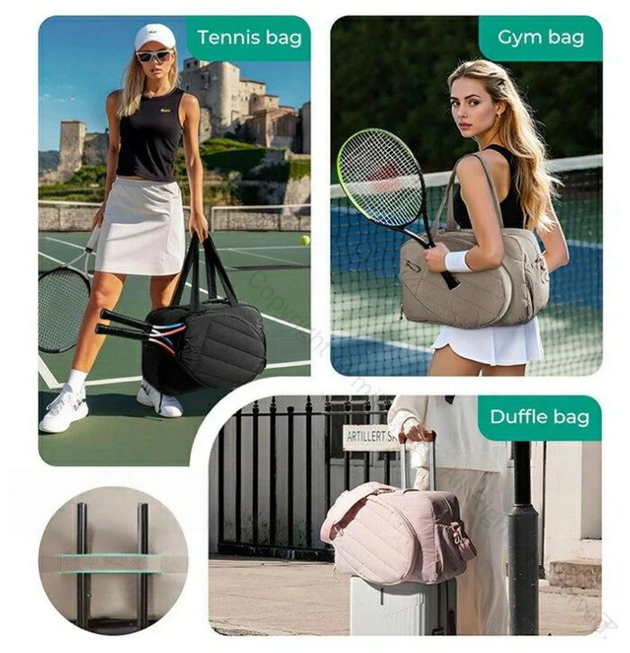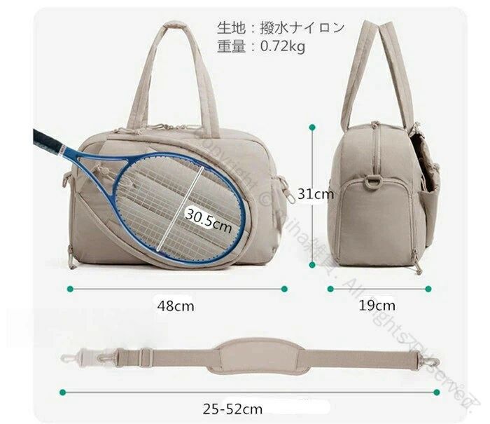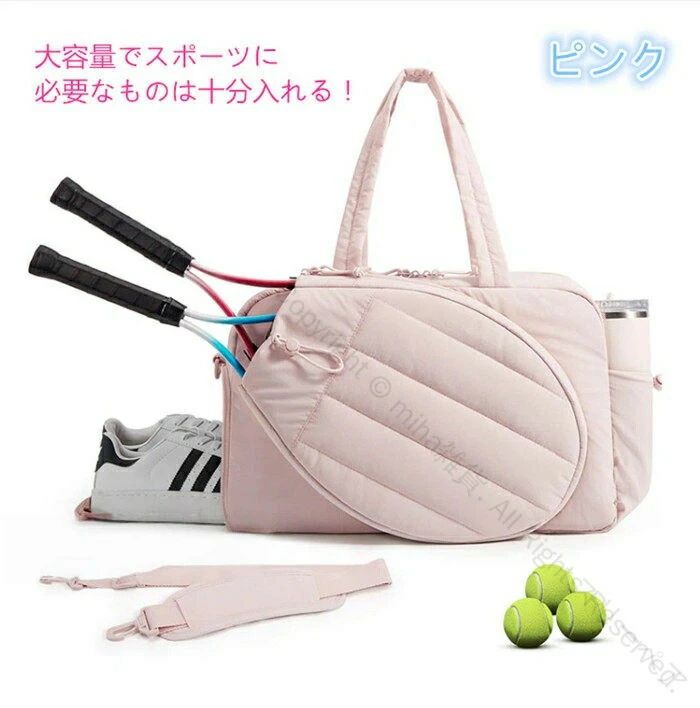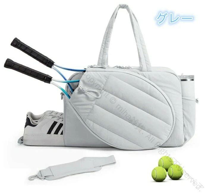 靴収納+濡れもの収納付き大きいサイズラケットバッグテニスバッグバドミントンバッグスポーツトートバック男女兼用軽量ジムバッグ多機能型旅行用持ち運び簡単キルティング大容量バッグ耐久性抜群設計
