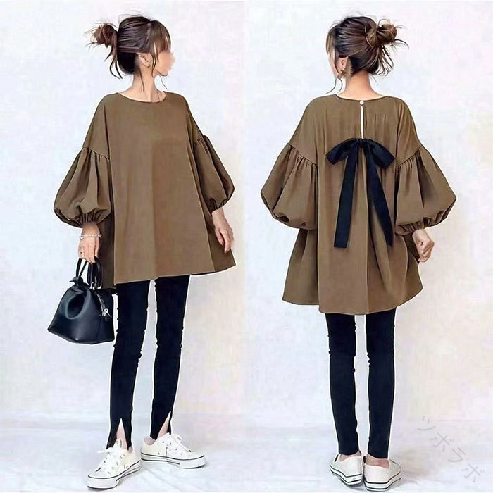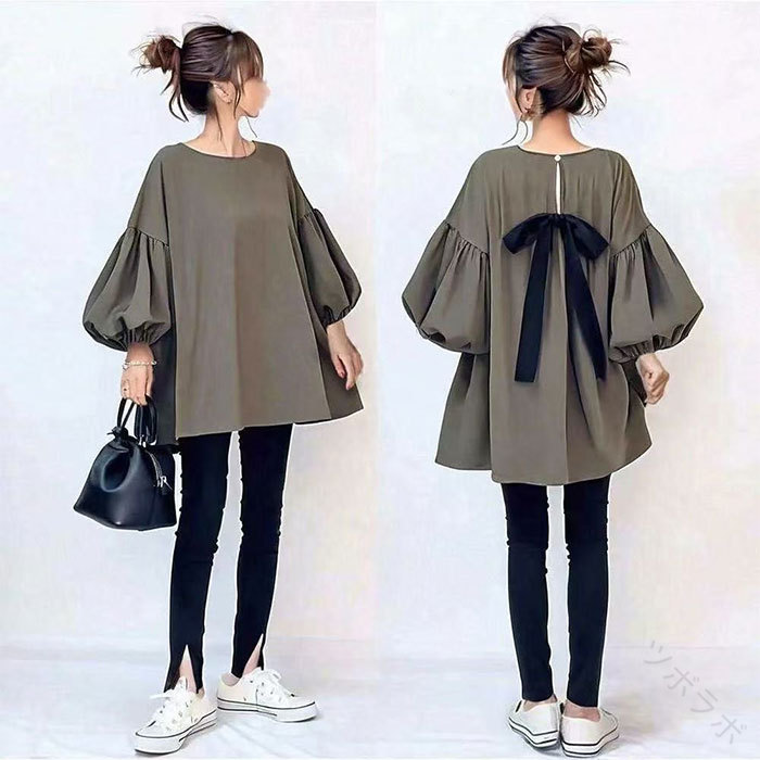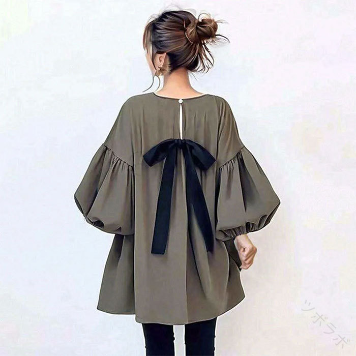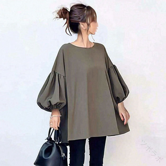 チュニック チュニックワンピース パフ レディースファッション 続々登場 ブラウン グレー グリーン