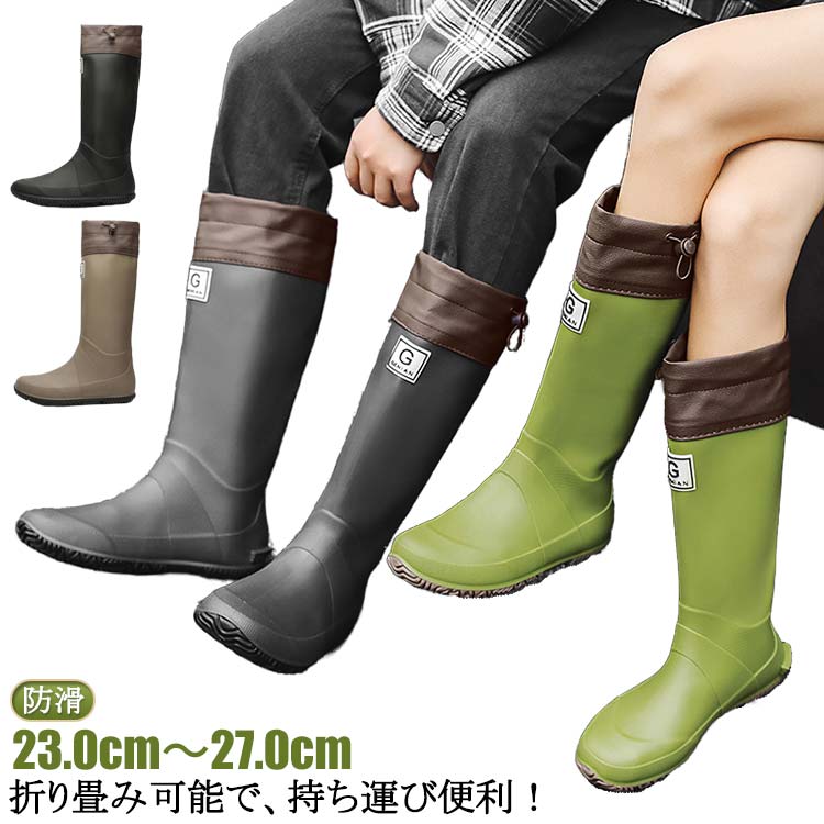 レインブーツ 防滑 ロング丈 農業用長 レディース靴 レインシューズ 長靴 ブーツ 人気 黒 ブラウン 灰 緑 (36)23.0cm (37)23.5cm (38)24.0cm (39)24.5cm (40)25.0cm (41)25.5cm (42)26.0cm (43)26.5cm (44)27.0cm