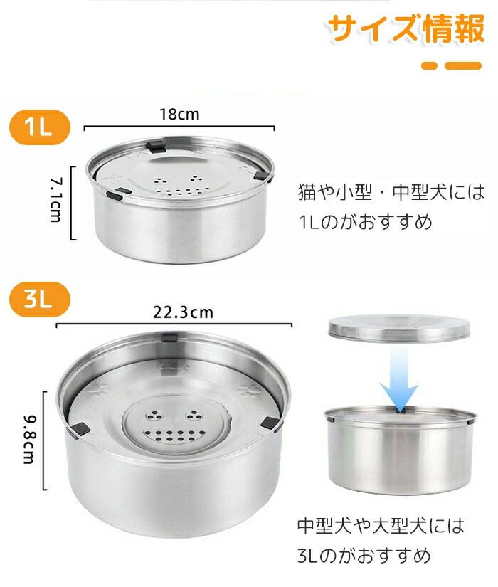 水飲み器 犬用 1L 3L 給水器 犬用水飲み器 自動給水器 犬水飲み器 ペット 犬 猫 水分補給 水飲み こぼれ防止 滑り止め 濡れない 清潔 早飲み防止 ペット給水器 ステンレス製 ウォーターボウル 猫給水器 犬給水器 小型犬 中型犬 大型犬 洗いやすい 丸洗い 自動水やり器 自動水やり機 みずのみ器 浄水 猫用 犬用 ペット給水器 猫給水器 おしゃれ ねこ ネコ いぬ 給水 自動補水 循環 大容量 水浄化 衛生的 持ち運び 省エネ 軟水 猫 水入れ ほこりが入らない ペット 給水器 留守番 人気 おすすめ 口コミ 多頭飼い 置き型 シルバー 子猫 子犬 老犬 子猫 老猫 お手入れ簡単 分解できる 大容量 たっぷり ホコリ防止 毛が入らない 床が濡れない 口周り 濡れない アゴ濡れ防止 飛び散り防止 零れない 滑り止め付き ズレない カビない ぬめり防止 錆びない 錆びにくい 衛生的 金属製 304ステンレス ステンレス製 いぬ ねこ 給水皿 水皿 ペット用品 ペットグッズ 犬用品 猫用品 食品級 安全 安心