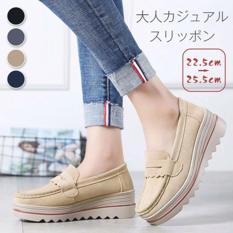 厚底スリッポン 軽量 レディース 靴 靴 早い者勝ち ブラック グレー ベージュ ネイビー 35 36 37 38 39 40 41