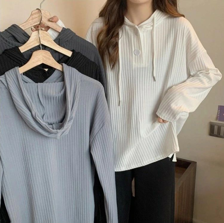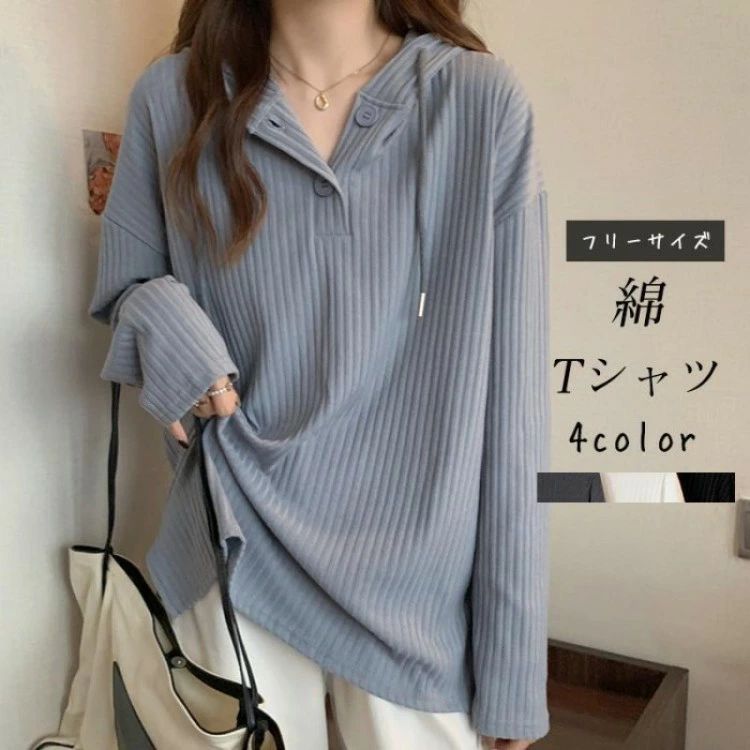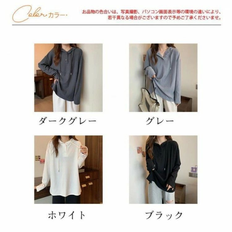 Tシャツ レディース 長袖 フード付き トップス Tシャツ カットソー 通販 ダークグレー グレー ホワイト ブラック M L XL 2XL 3XL 4XL