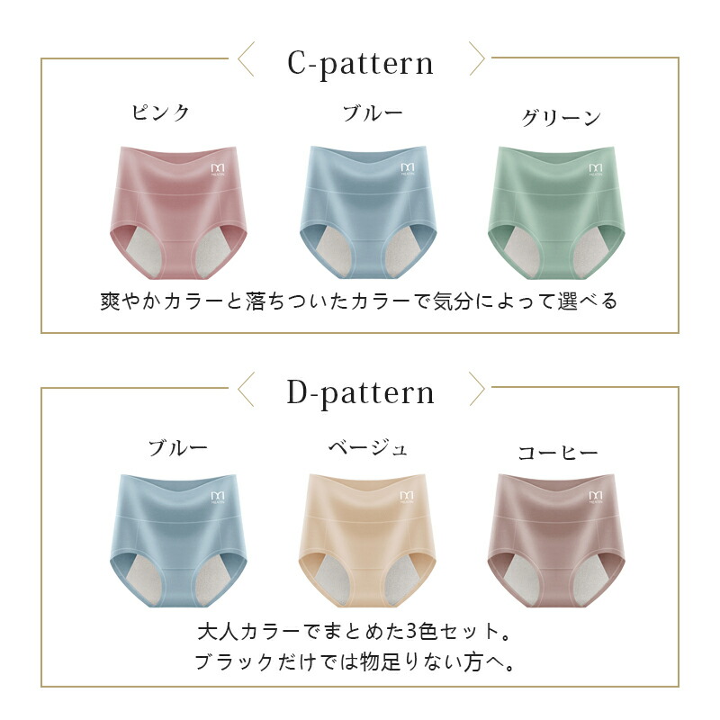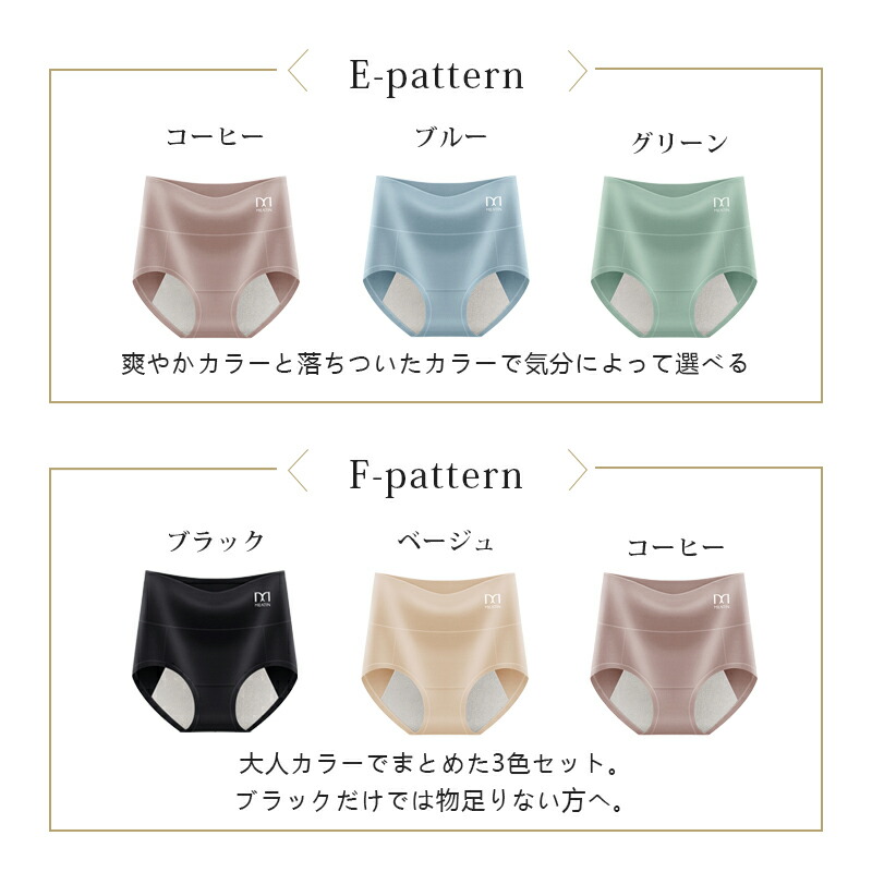 サニタリーショーツ シームレス 吸水シ インナー 下着 ナイトウエア 通販 A(ピンク+グリーン+ベージュ) B(ピンク+コーヒー+ベージュ) C(ピンク+ブルー+グリーン) E(コーヒー+ブルー+グリーン) L LL 3L 4L