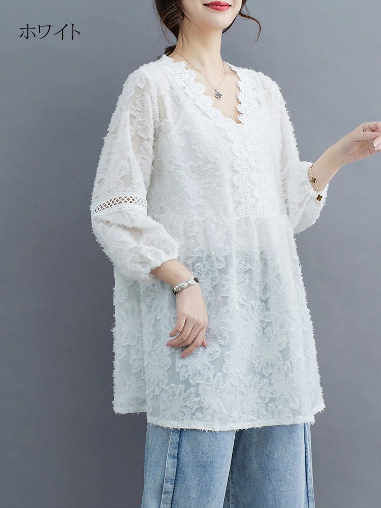 7分 プルオーバー シャツブラウス 春 レディースファッション 続々登場 ブラック ホワイト