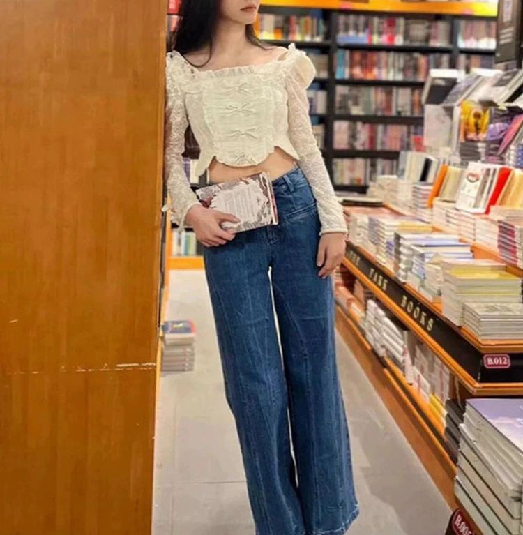 デニムパンツ ビジュー付き