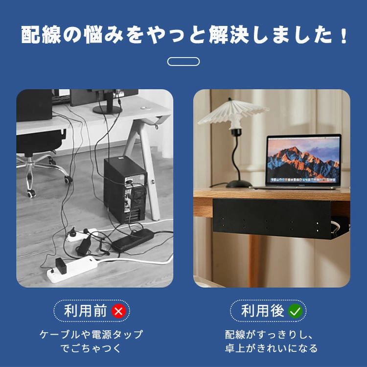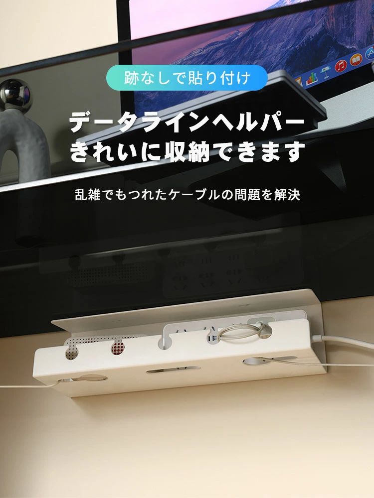 デスク下 配線 整理 穴あけ不要 貼り ホワイト ブラック