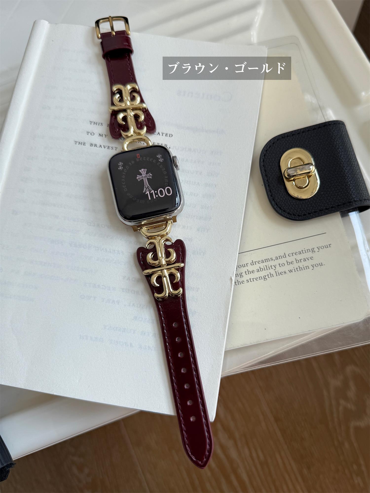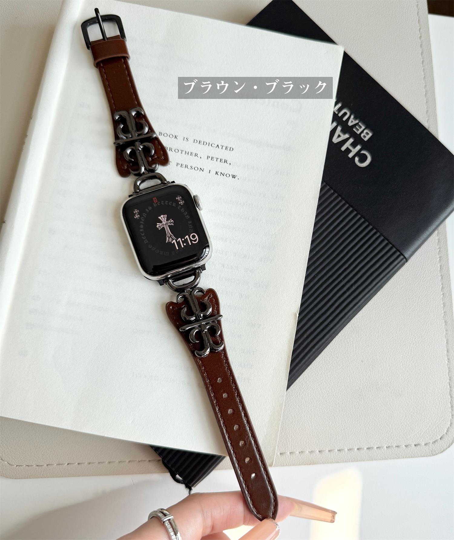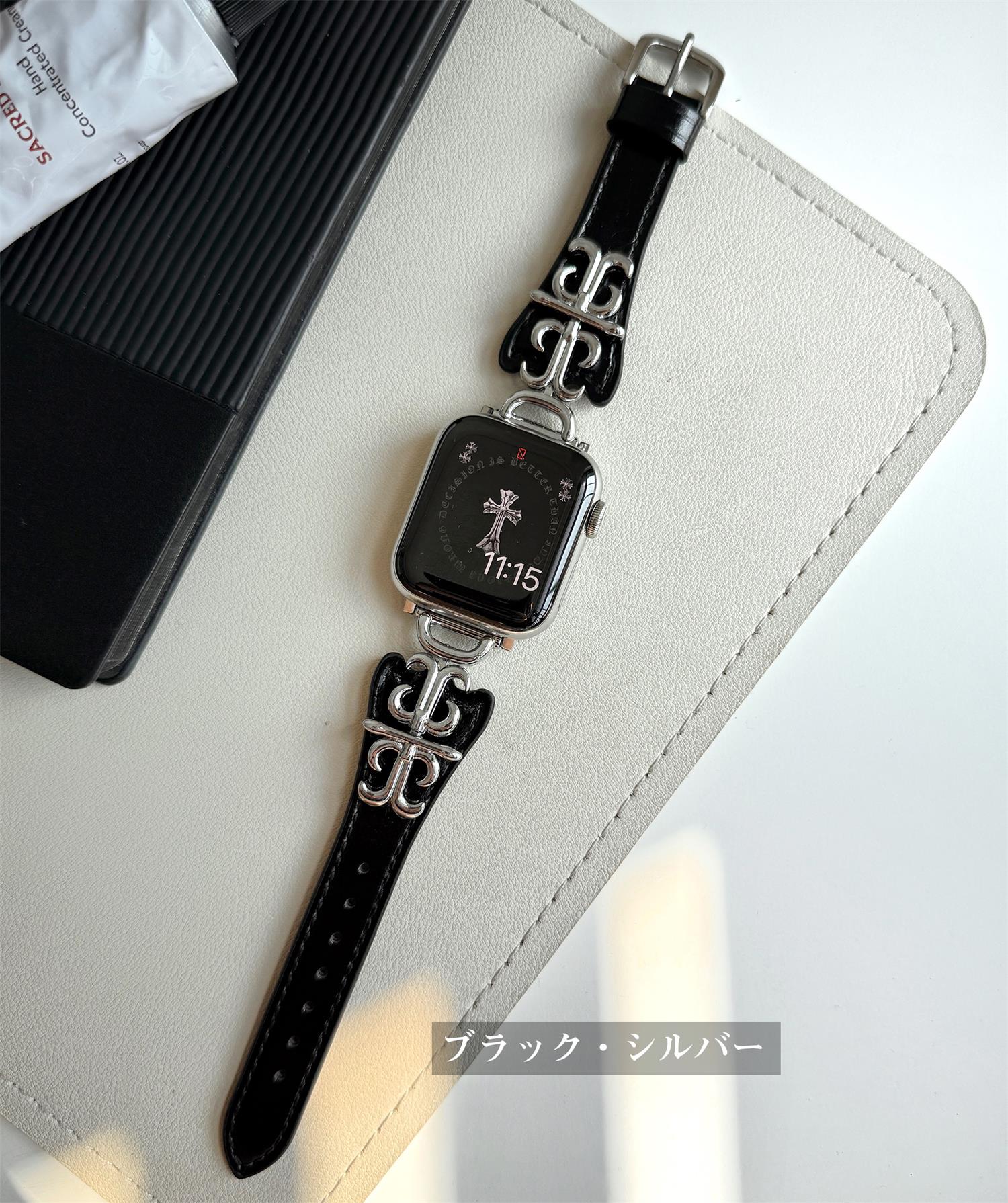 本革 牛革 アップルウォッチ ベルト バンド 高品質 レザー 穴留め式 軽量 クロムハーツスタイル 合金 色褪せず 高級感 アイウォッチ apple watch 10 9 8 7 6 4 3 2 5