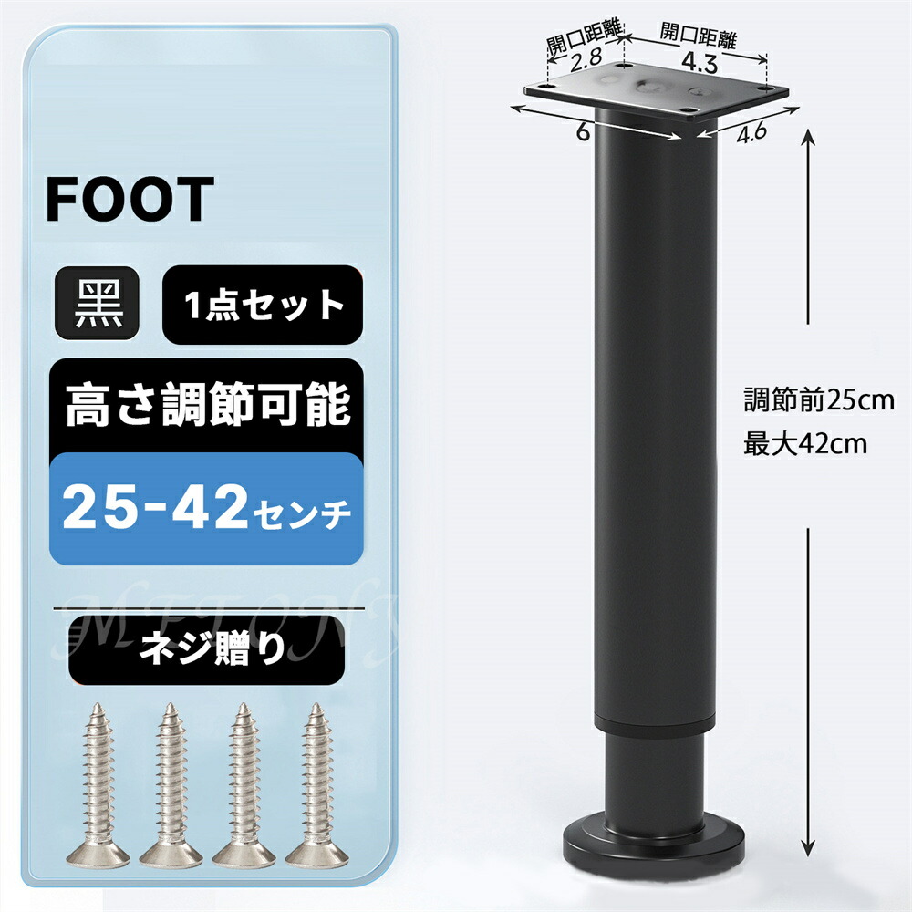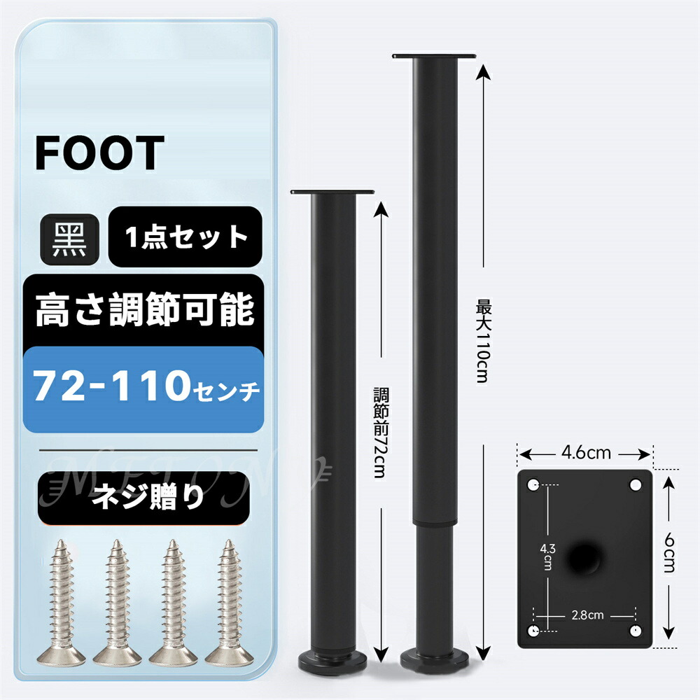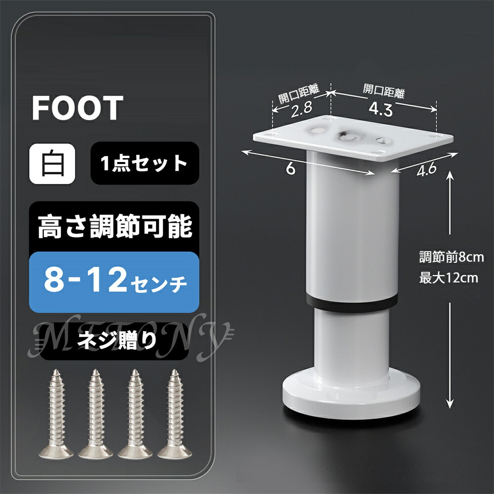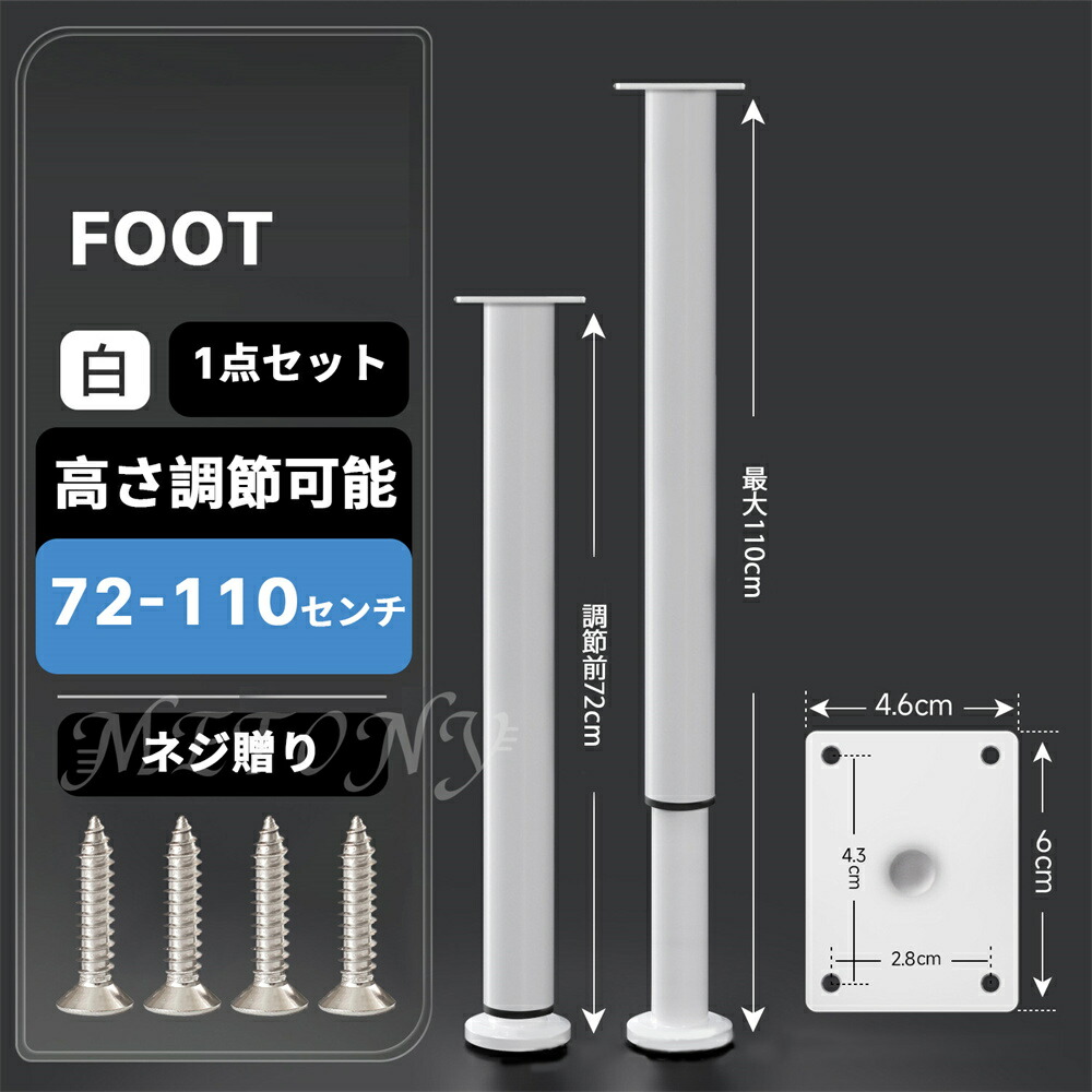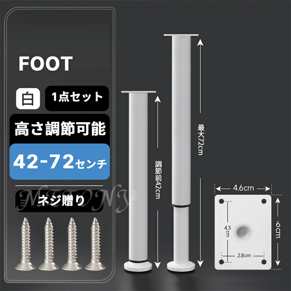 テーブル 脚 足 取り替え 継足 パー ブラック ホワイト 8センチ【8-12cm】 12センチ【12-18cm】 18センチ【18-30cm】 25センチ【25-42cm】 42センチ【42-72cm】 72センチ【72-110cm】