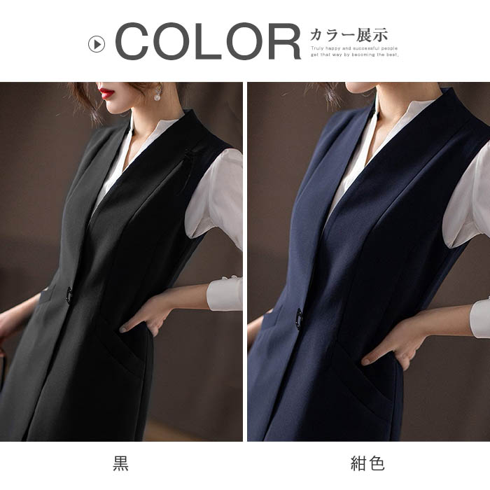 ロングジレ レディース ロングベスト レディースファッション 豊富 黒 紺色 M L XL