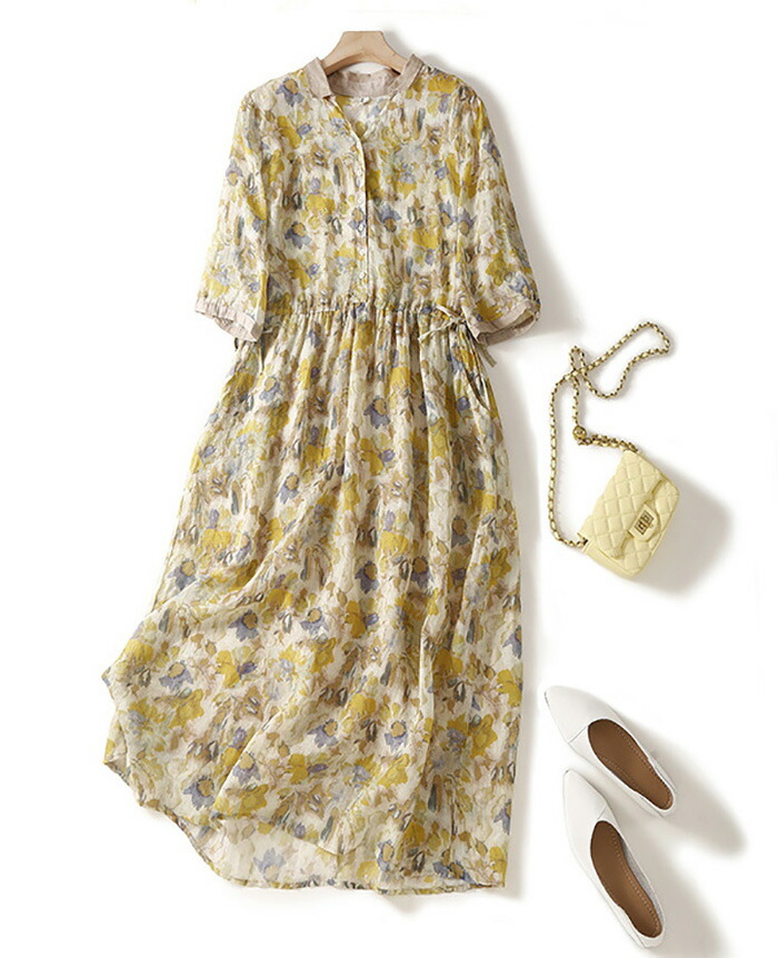 ワンピース レディース 夏 ロングワン レディースファッション 超目玉商品 ネイビー イエロー M L XL XXL