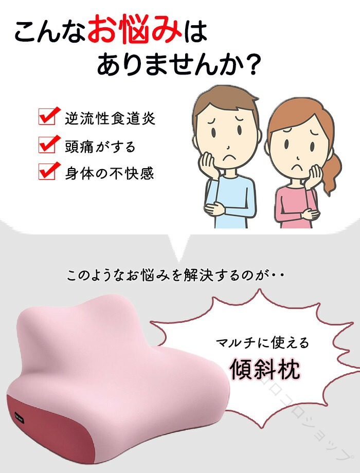 枕 ピロー 首 肩 ストレートネック まくら マクラ 傾斜枕 いびき解消 いびき改善 取り外し可能 背中まで 上半身 仰向け 低反発 姿勢 快適 斜め ごろ寝 むくみ 疲れ 肩こり 軽減 洗 腰痛
