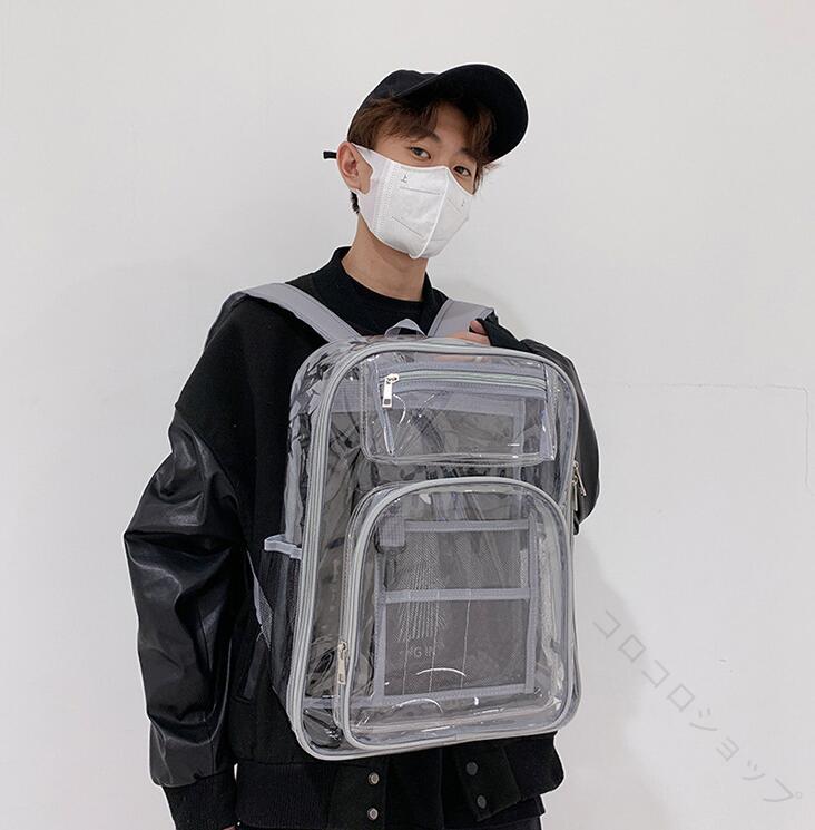 透明リュックサック PVC素材 耐久性抜群 防水設計 男女兼用 クリアバック トラベルバックパック 通学 通勤 外出 アウトドア 女の子向け 透明クリアデザイン 人気商品 多機能