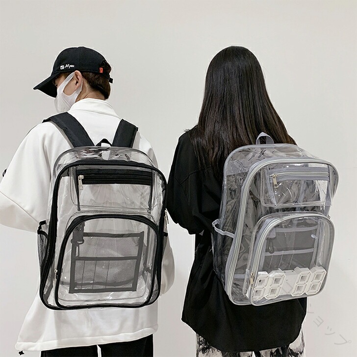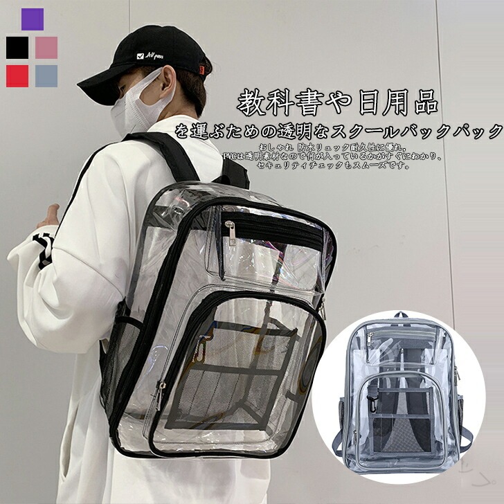 透明リュックサック PVC素材 耐久性 バッグ 小物 ブランド雑貨 豊富 ブラック グレー パープル ピンク レッド