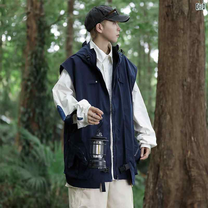 メンズ 機能性 ワーク ベスト アウター 日系 スタイル カジュアル フィット ストリート ファッション 軽量 速乾 多め 通勤 普段使い ポケット