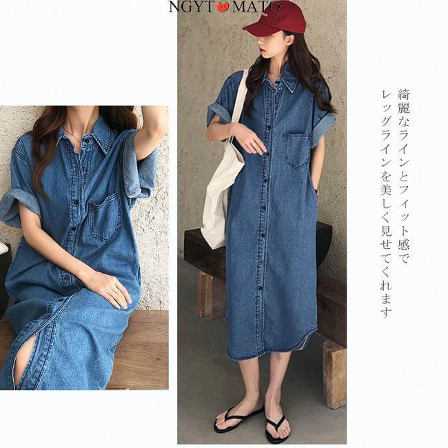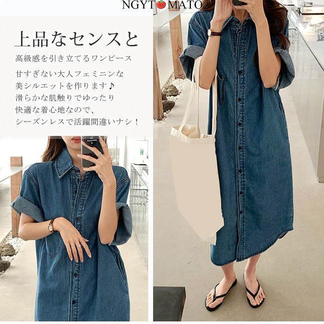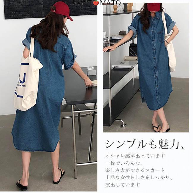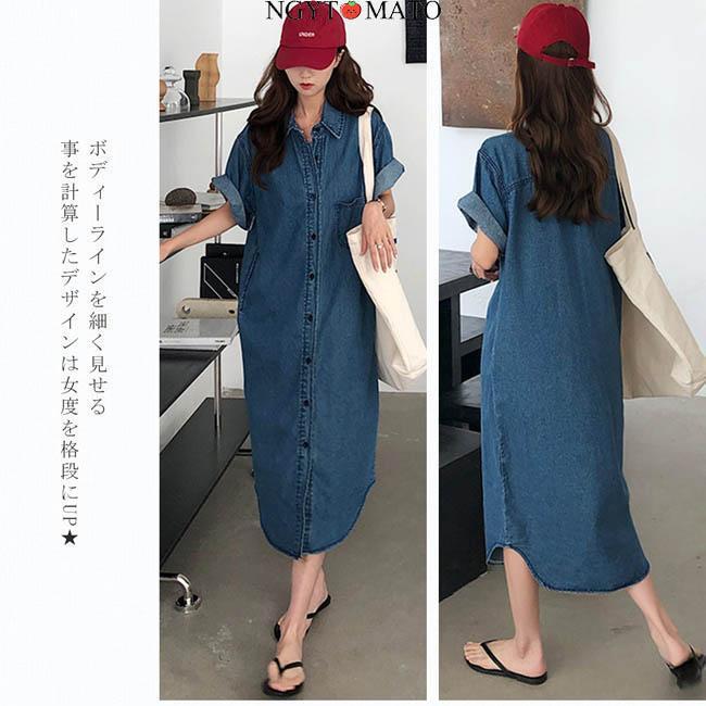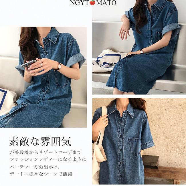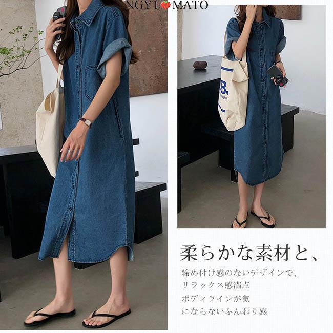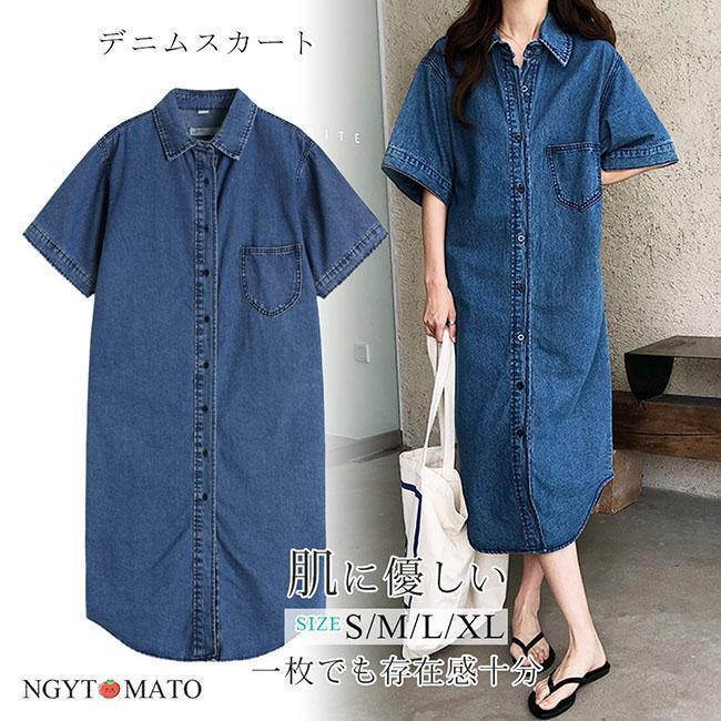 デニムワンピース レディース 半袖 デ レディースファッション 続々登場 S M L XL