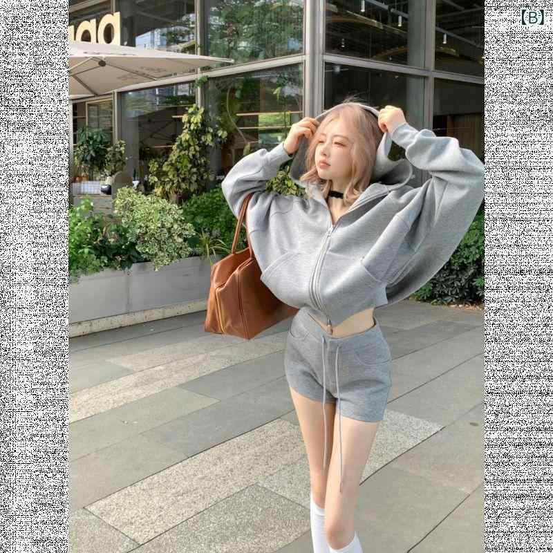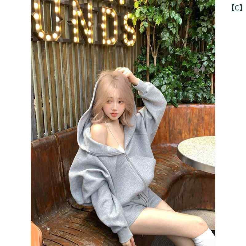 レディース カジュアル フード付き パ レディースファッション 豊富 A:グレーコート B:グレーショーツ C:グレーコート+グレーショーツ S M L XL