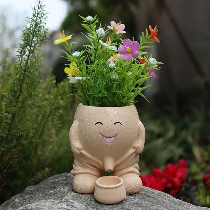 植木鉢 プランター 小便小僧風 ズボン 手芸 クラフト 生地 レジン液 超目玉商品 A:パンツ脱ぎ笑顔おしっこ鉢 茶 B:パンツ脱ぎ笑顔おしっこ鉢 白