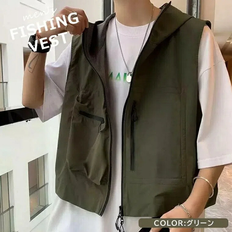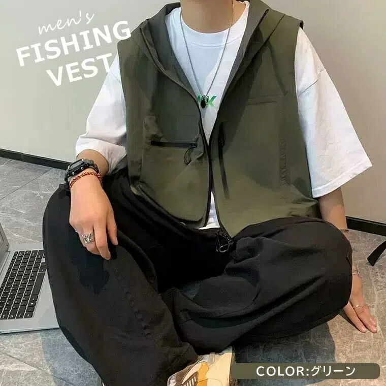 トレンドかつシティーボーイ風の着こなし フィッシング ウェア フィッシングベスト 特集 グリーン ブラック M L XL 2XL